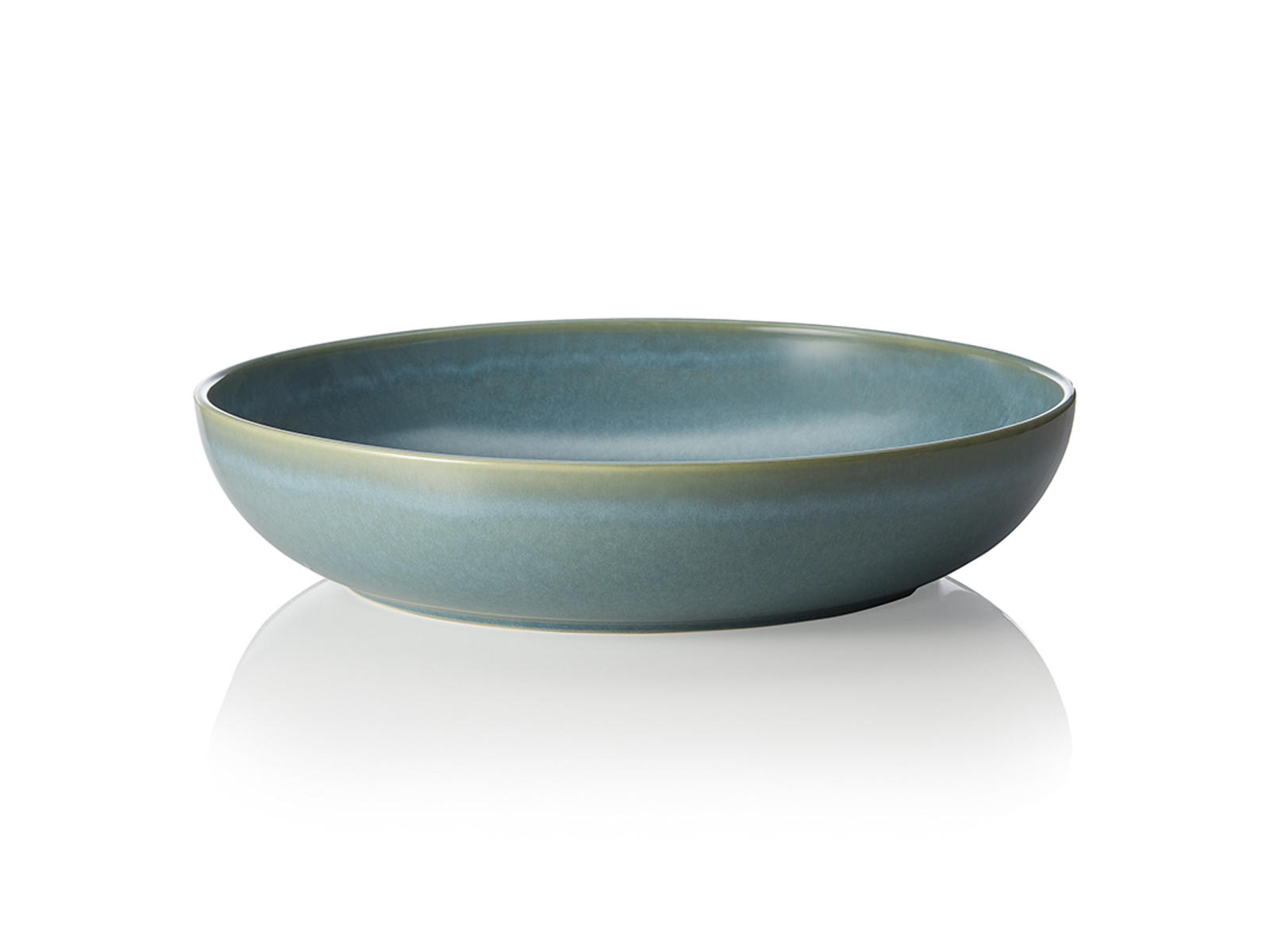 This spacious stoneware serving bowl from Rockzzero's One Myrtle Green series beautifully combines functionality and aesthetics. With a diameter of 33 cm, a height of 7 cm, and a capacity of 3 liters, it offers ample space for both everyday meals and festive occasions. The distinctive green-blue glaze adds a calm, natural touch to your table.