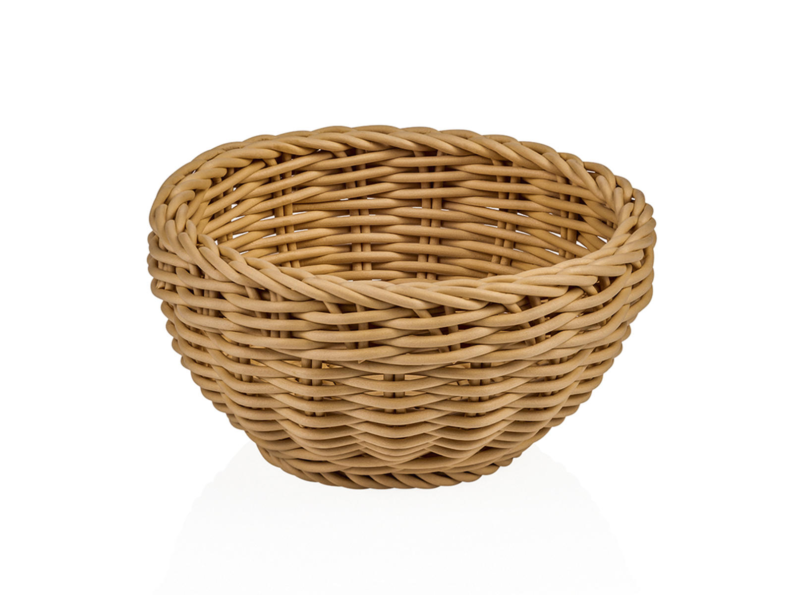 The Weaver Pro bread basket in beige, with a diameter of 16 cm and a height of 8 cm, features a beautiful woven pattern that adds a touch of warmth and elegance to your table setting. Its compact size makes it ideal for serving various types of bread, rolls, or other baked goods, while the stylish design fits perfectly in both home and professional dining environments.