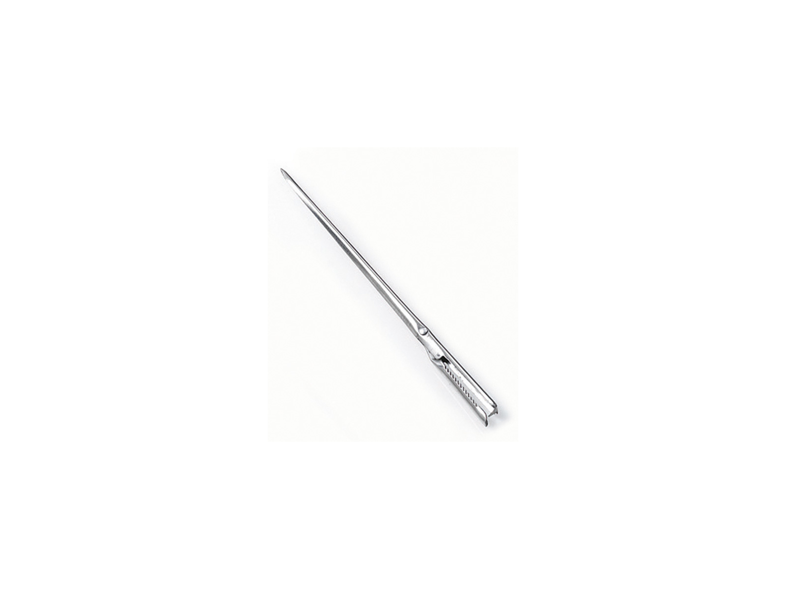 The Triangle basting needle with flap is made of stainless steel and designed to make lean meats juicier and more flavorful. With a length of 195 mm and a convenient flap to hold the bacon strips in place, this basting needle makes it easy to add fat to lean cuts of meat. The needle is dishwasher safe, ensuring easy cleanup after use.