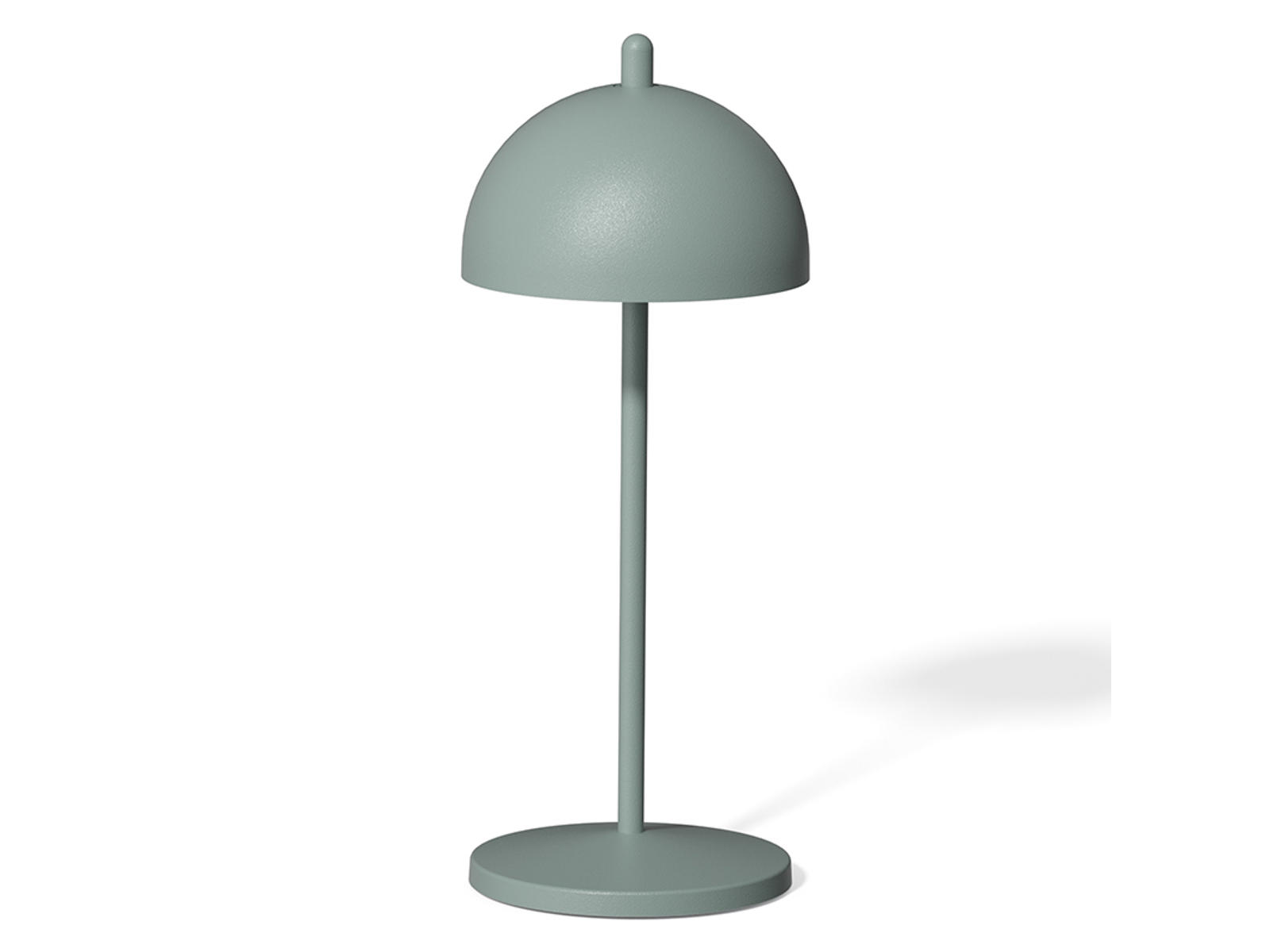 The lamp measures 198 mm in height with a diameter of 80 mm. It is made of aluminum with a fresh mint green finish that adds a modern touch. The power supply comes from a built-in 3.7-volt battery, which can be easily recharged. Its compact size makes it easy to move around and place exactly where needed.