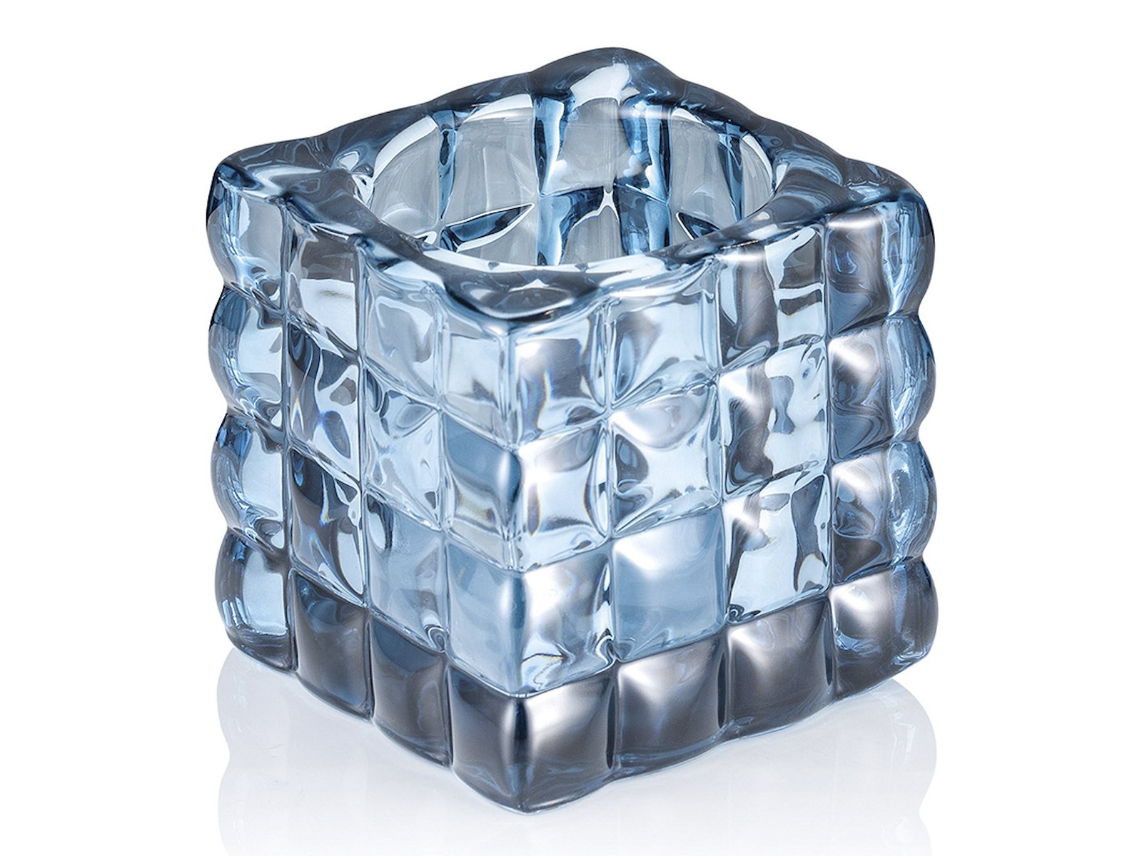 This candle holder measures 9x9x9 cm, making it ideal for standard-sized candles. The cubic shape gives it a modern expression, and the smoky gray color adds an elegant touch. The material is heat-resistant and designed for safe use with lit candles. The glass is easy to clean with a damp cloth.