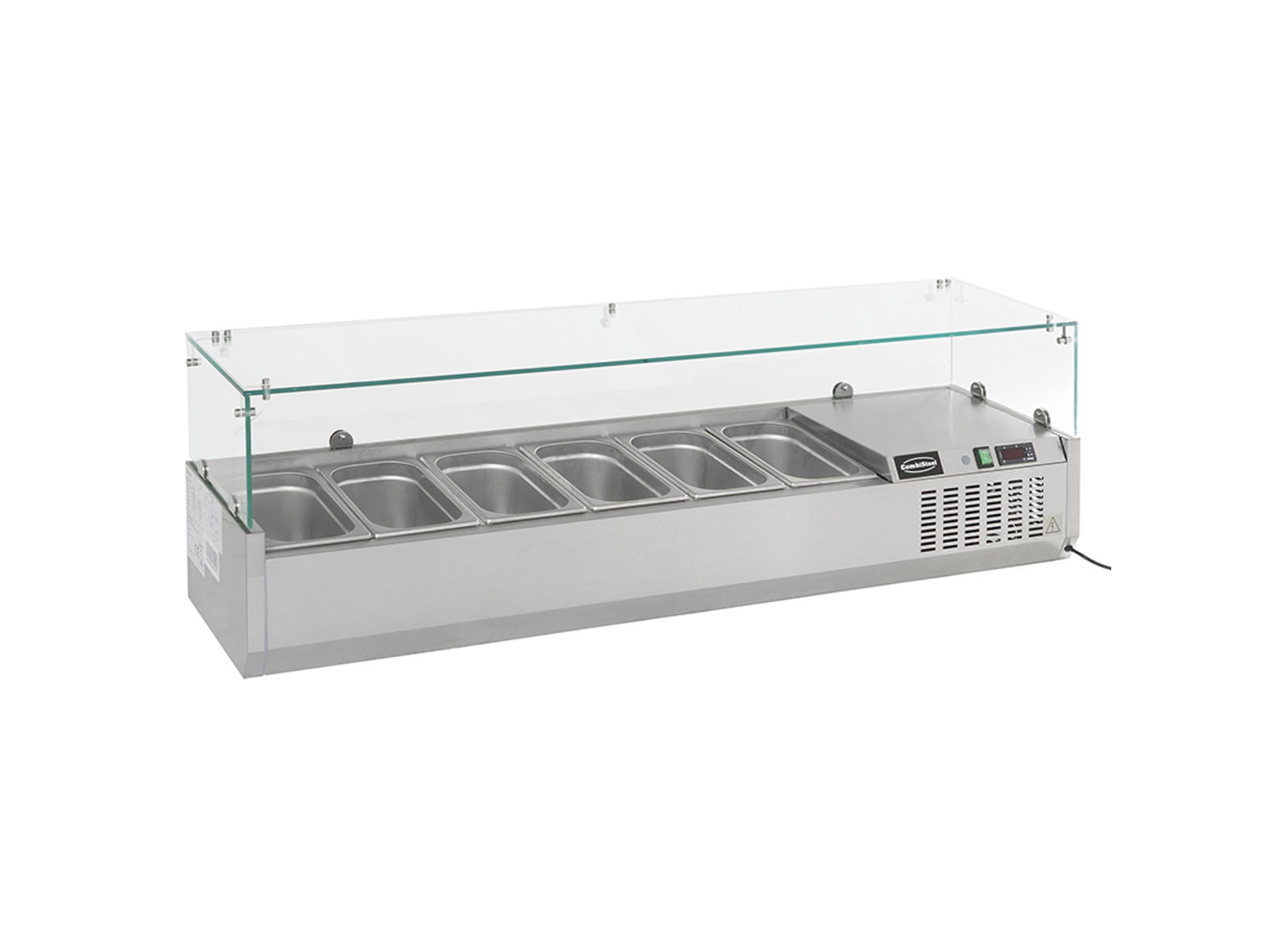 With space for six 1/3 GN trays, this cooling shelf provides you with the flexibility to organize different ingredients separately, streamlining kitchen workflows. It is designed to fit perfectly into professional kitchen setups, providing easy access to ingredients during peak times. This means less wasted time and more efficient cooking, as staff do not need to leave their workstation to retrieve chilled items.