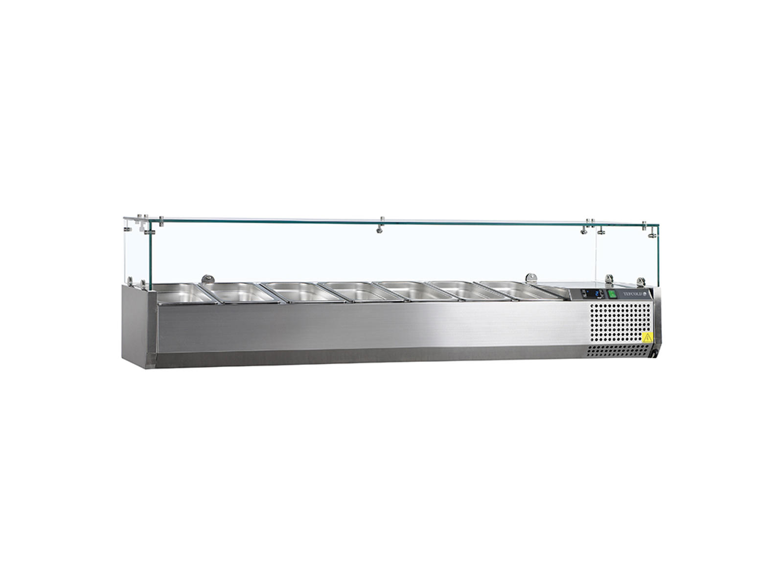 Despite its modest dimensions (1600 x 395 x 260 mm), the refrigerated unit offers a capacity of 59 liters, accommodating 7 GN 1/3 containers. This makes it ideal for workstations with limited space, where efficient use of every square centimeter is essential. The environmentally friendly refrigerant R600a also supports responsible operation in your kitchen.