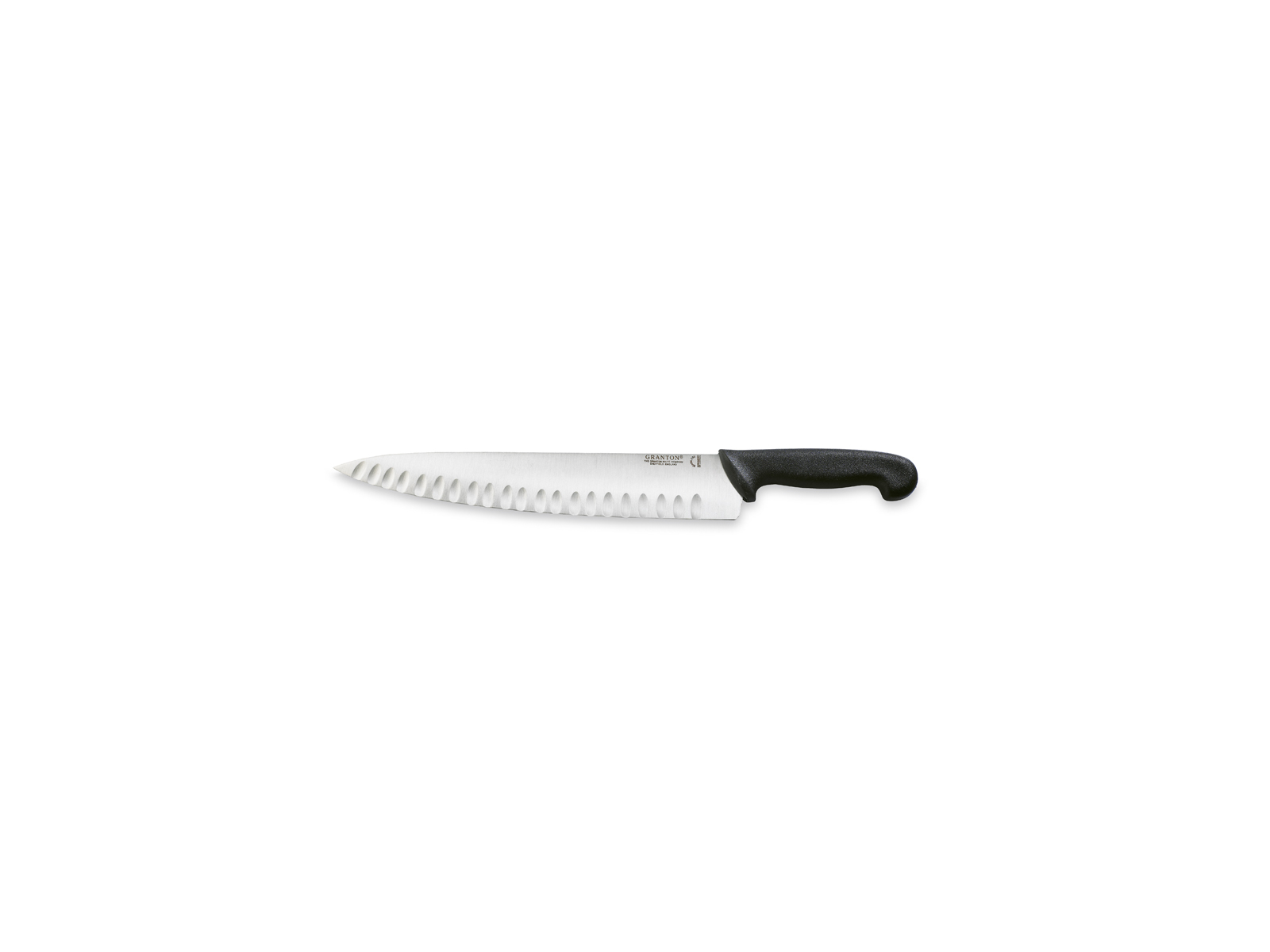 Manufactured by Granton in Sheffield, England, where knife makers have refined their craft since the 17th century. The blade is made from plate steel with a hardness of 56 HrC, providing an excellent balance between sharpness and durability. The black polypropylene handle ensures a secure grip, even when your hands are wet. Weighing only 215 grams, the knife feels comfortable in hand and gives you full control during the cutting process.