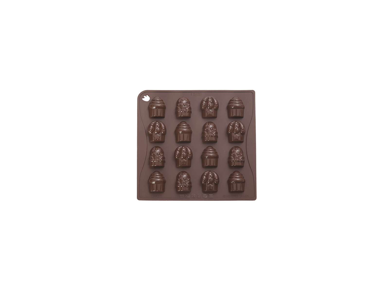 The chocolate mold is made from food-grade silicone that withstands temperatures from -40°C to +230°C. This makes it incredibly versatile in the kitchen. You can use it for traditional chocolate molding, but also for jelly, ice cream, or even baked goods. The flexibility of the material allows for easy inversion of the mold, releasing the content without damaging the fine details of the cupcake design.