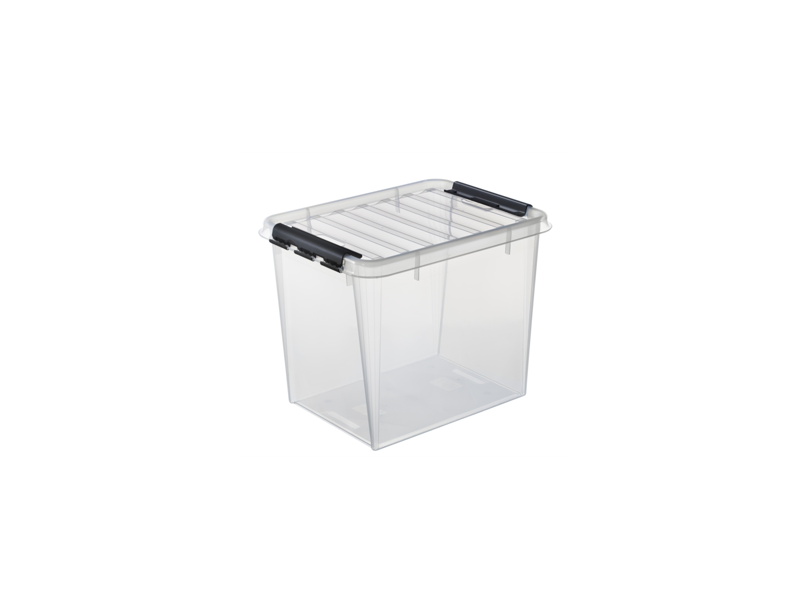 - A transparent 52-liter storage box with a lid
