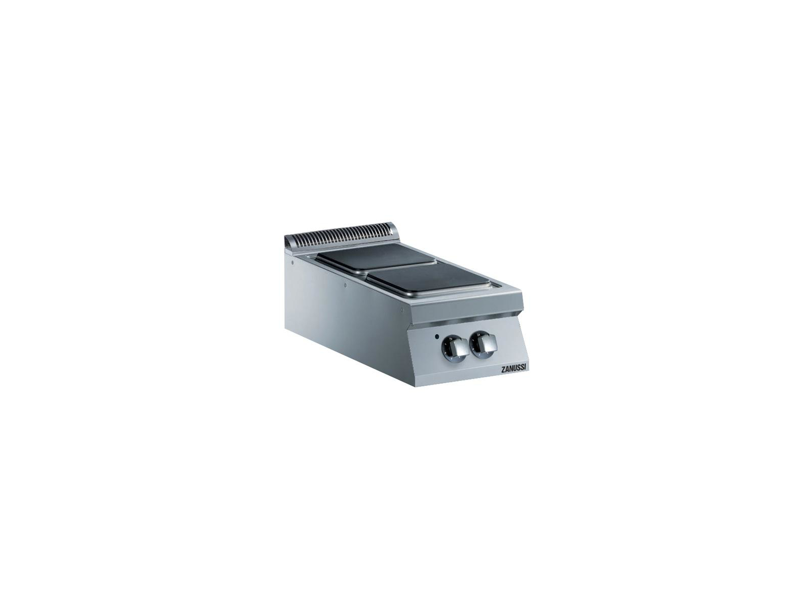 The Zanussi Z9ECEH4Q00 cooking table in stainless steel delivers a total power of 16kW distributed across four robust 4kW cast iron plates. The fully welded top plate ensures durability and hygiene, while the hermetically sealed cooking plates provide maximum heat efficiency.