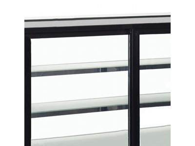 The flat glass front with anti-condensation feature offers customers an unobstructed view of the products, no matter where they are in the room. The practical sliding doors at the back make it easy for staff to operate the fridge, even during busy periods. The black finish combined with stainless steel provides a professional look that fits into any business decor.