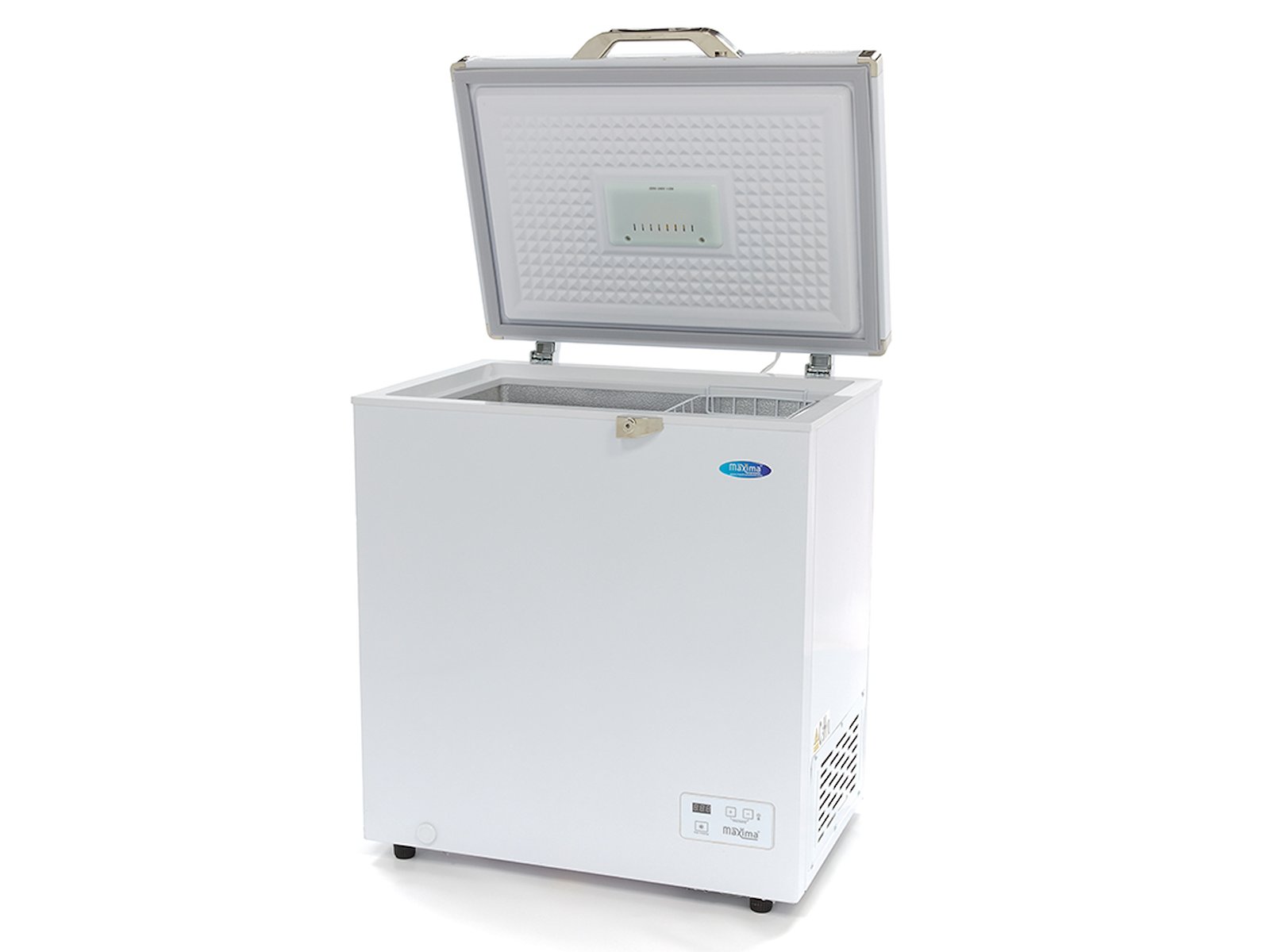 The chest freezer has a capacity of 140 liters, making it compact enough for smaller rooms while still offering good storage capacity.