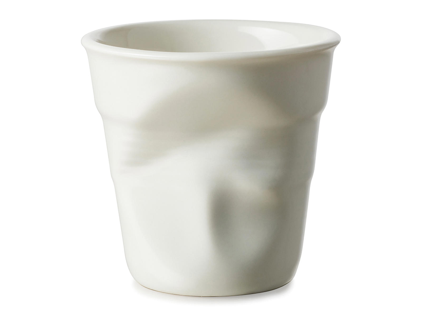This 180ml cappuccino cup from Revol's Froisse series features a unique wrinkled shape in a beautiful terracotta color. The handcrafted porcelain cup combines artistic design with everyday functionality in a compact size of 85x85mm, making it perfect for your daily coffee enjoyment.