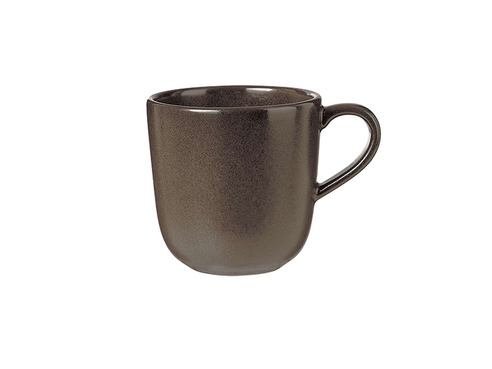 The coffee cup is made from stoneware, a robust material fired at very high temperatures. It has a volume of 20 cl and comes in the beautiful Metallic Brown color, adding a sophisticated touch to your kitchen. Each cup is unique with slight variations, emphasizing its handcrafted nature and giving each cup its own character.
