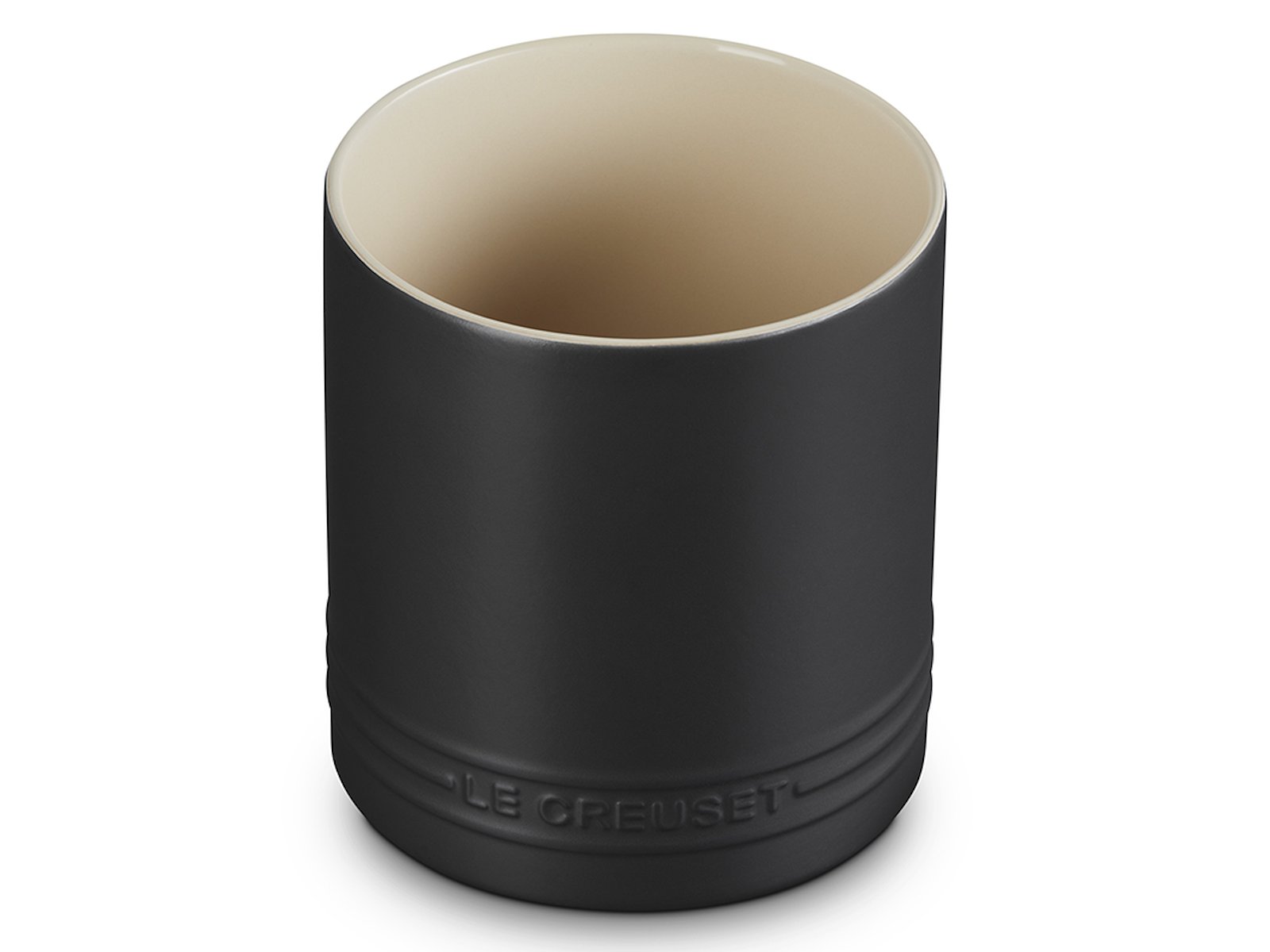 The Le Creuset Signature utensil jar in matte black is crafted from durable, glazed stoneware with a capacity of 1.1 liters. With its timeless aesthetic and practical functionality, it offers an elegant storage solution for your essential kitchen tools while adding a design boost to your countertop.