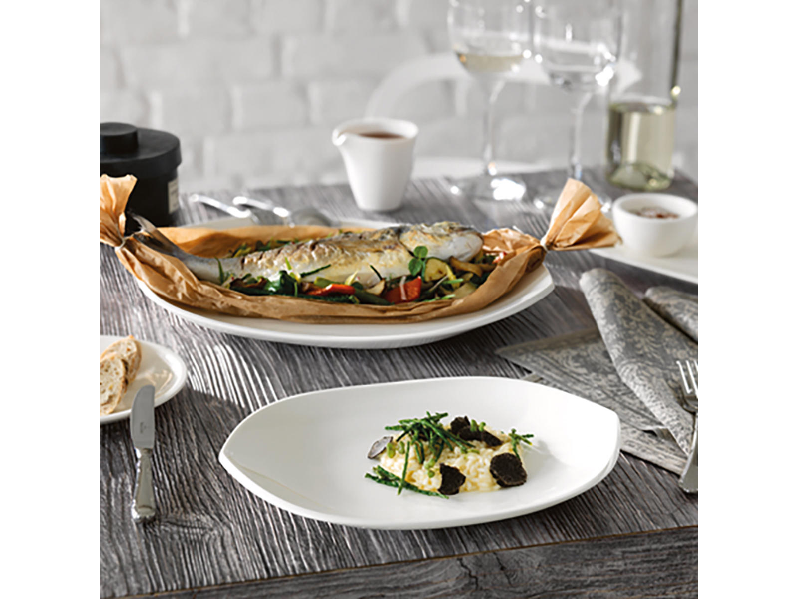 The distinctive flat edges give the bowl a modern look, while the simple design ensures it fits seamlessly into any table setting. The combination of premium porcelain with natural materials like wood, slate, and cork in the Artesano series creates a harmonious balance that beautifully showcases your dishes. This bowl allows you to create a cohesive style, whether your decor is rustic or modern.