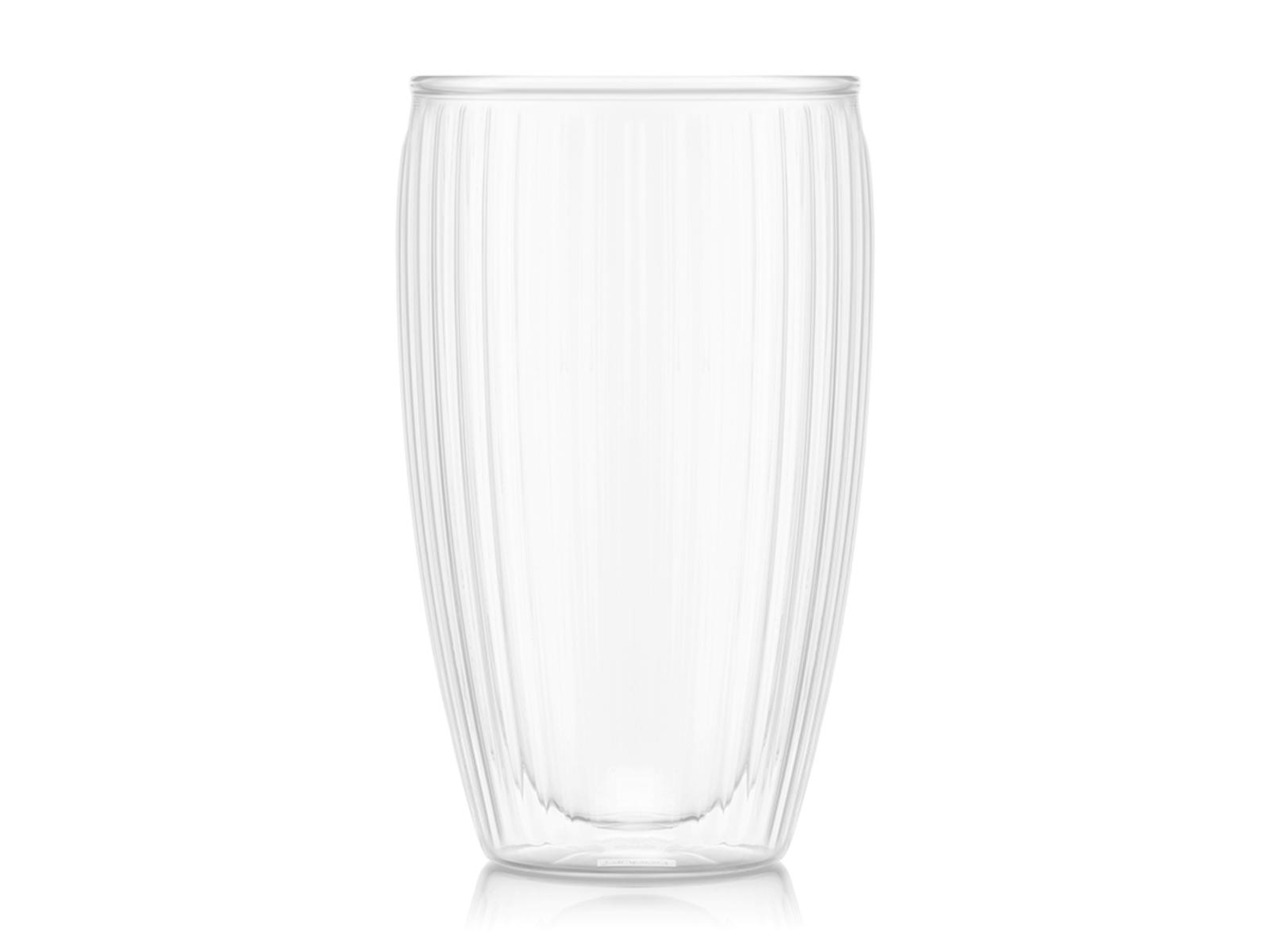 This set of two double-walled Pavina glasses from Bodum combines elegant design with practical functionality. The glasses are made of heat-resistant borosilicate glass with a capacity of 45 cl and feature a ribbed texture that not only provides a good grip but also adds a stylish touch. The double-walled construction with a silicone valve at the bottom ensures optimal temperature retention for all types of beverages.