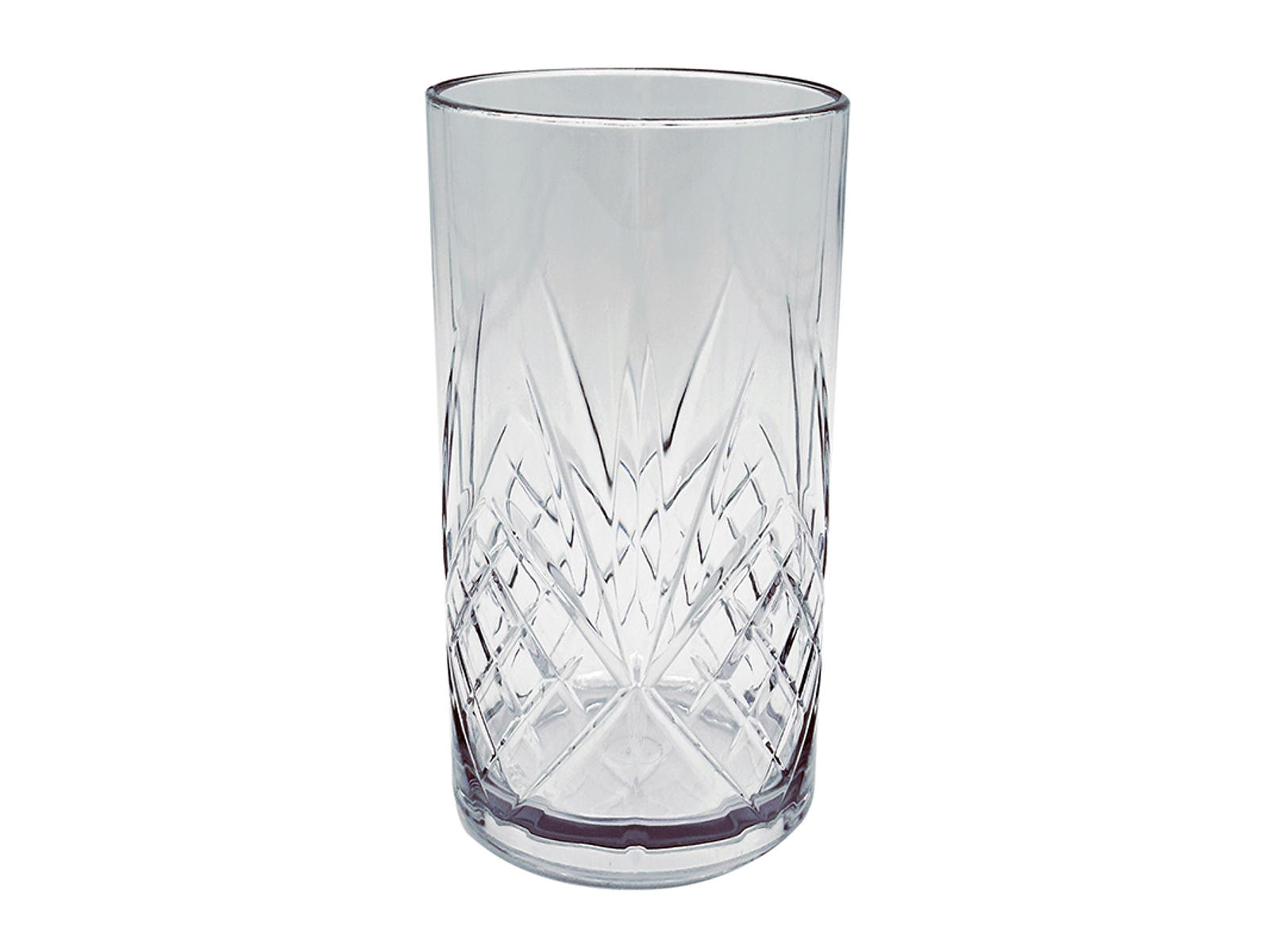 The Firenze glass from Goldplast measures 60 cl in volume with a weight of 125 grams per piece. The glass is made from food-approved plastic that can withstand machine washing and repeated use without losing clarity or strength. The design is timeless, featuring clean lines that fit into various serving environments.