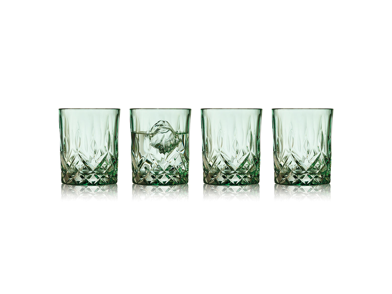 Lyngby Sorrento whisky glasses are made from solid green glass with a capacity of 32 cl. The set includes 4 glasses with a total weight of 1120 grams. The glasses are dishwasher safe, making cleaning simple and convenient. The faceted surface gives the glasses their distinctive look while ensuring a good grip.