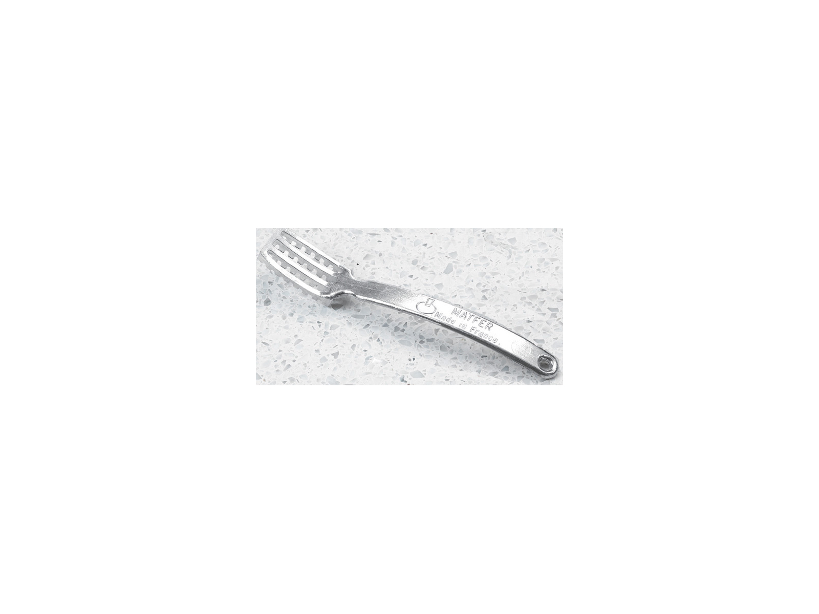 The Matfer Bourgeat aluminum fish scaler is made from a single piece of monoblock aluminum, making it exceptionally robust and durable. With a length of 22 cm, it fits comfortably in your hand and gives you full control when removing scales from fish. It is ideal for both small fish and larger fillets in a professional kitchen.