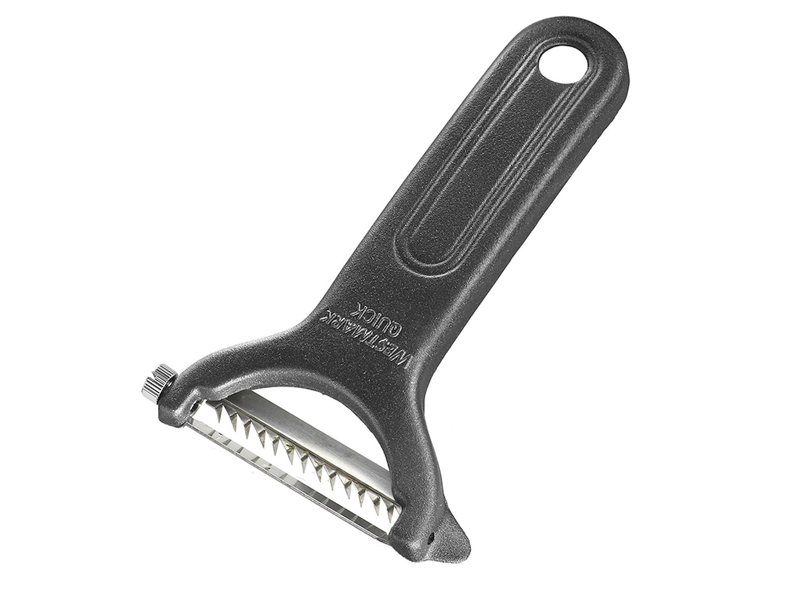 Westmark's Julienne Cutter Black Edition is a precision kitchen tool made from a combination of aluminum and stainless steel. With its serrated blade, it quickly slices vegetables into fine, uniform julienne strips in just seconds. Its compact size of 15x77x128 mm makes it easy to handle and store.