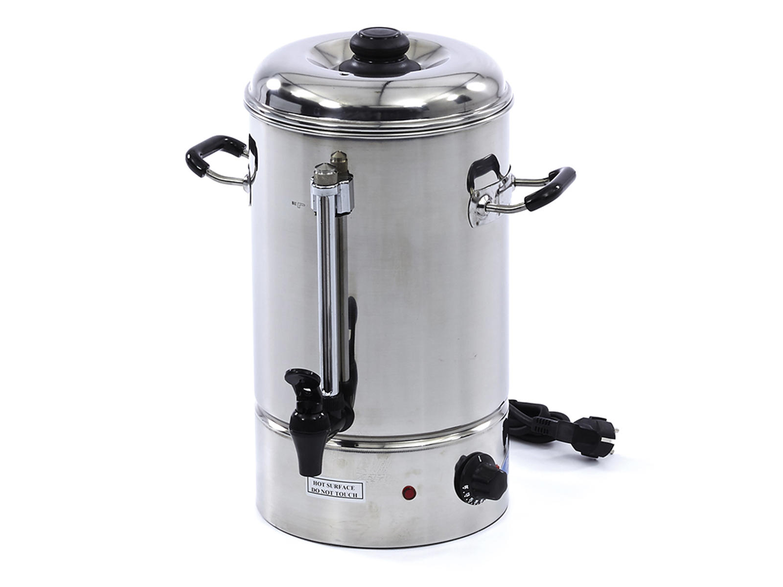 The Maxima hot water dispenser with a 10-liter capacity is designed for efficient serving of hot drinks in professional settings. With an adjustable temperature range of 30°C to 110°C and a powerful 2000-watt heating element, it ensures fast heating and a consistent temperature. The dispenser is ideal for serving tea, coffee, hot chocolate, or other hot beverages at larger events, in cafeterias, or at hotels.