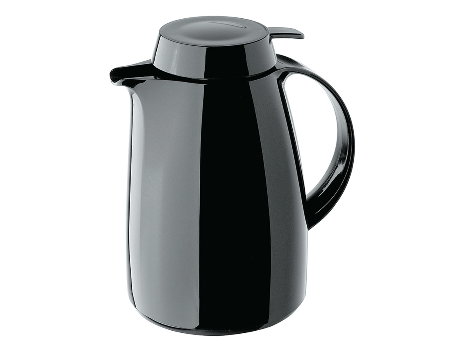 This Helios thermal carafe holds 1 liter and combines practical design with excellent heat retention. With its durable black plastic surface, the carafe is both stylish and functional. Weighing 660 grams and capable of holding approximately 8 cups, it is perfect for both small gatherings and professional serving situations.
