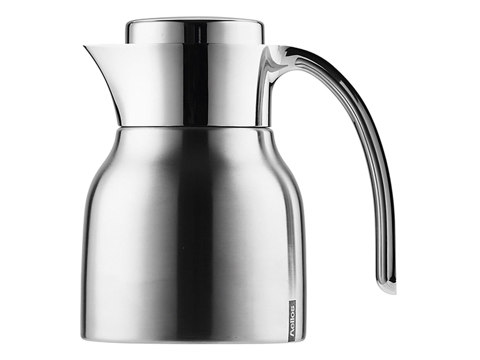 The Helios Meeting thermos in stainless steel with a silver-coated surface combines elegant design with practical functionality. With a capacity of 0.6 liters (approximately 5 cups) and a double-walled insulation insert, this thermos keeps your drinks at the right temperature for a long time. The jug is made from shatterproof stainless steel and features a tightly sealing screw lid.