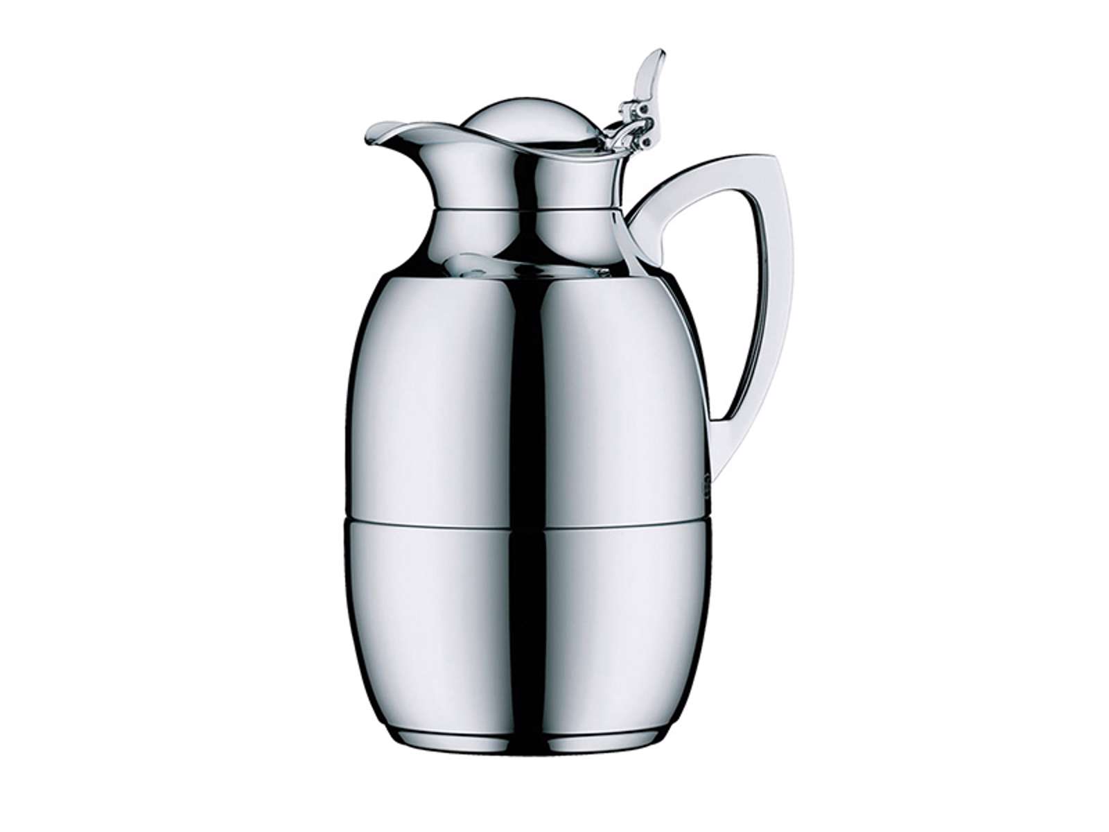 The thermos is made from durable materials with an elegant chrome finish that fits well in both modern and classic environments. With a capacity of 1.0 liters, it is compact enough for easy storage but spacious enough to meet the needs of smaller gatherings. It is designed with a focus on both functionality and aesthetics, which is characteristic of Alfi's products.
