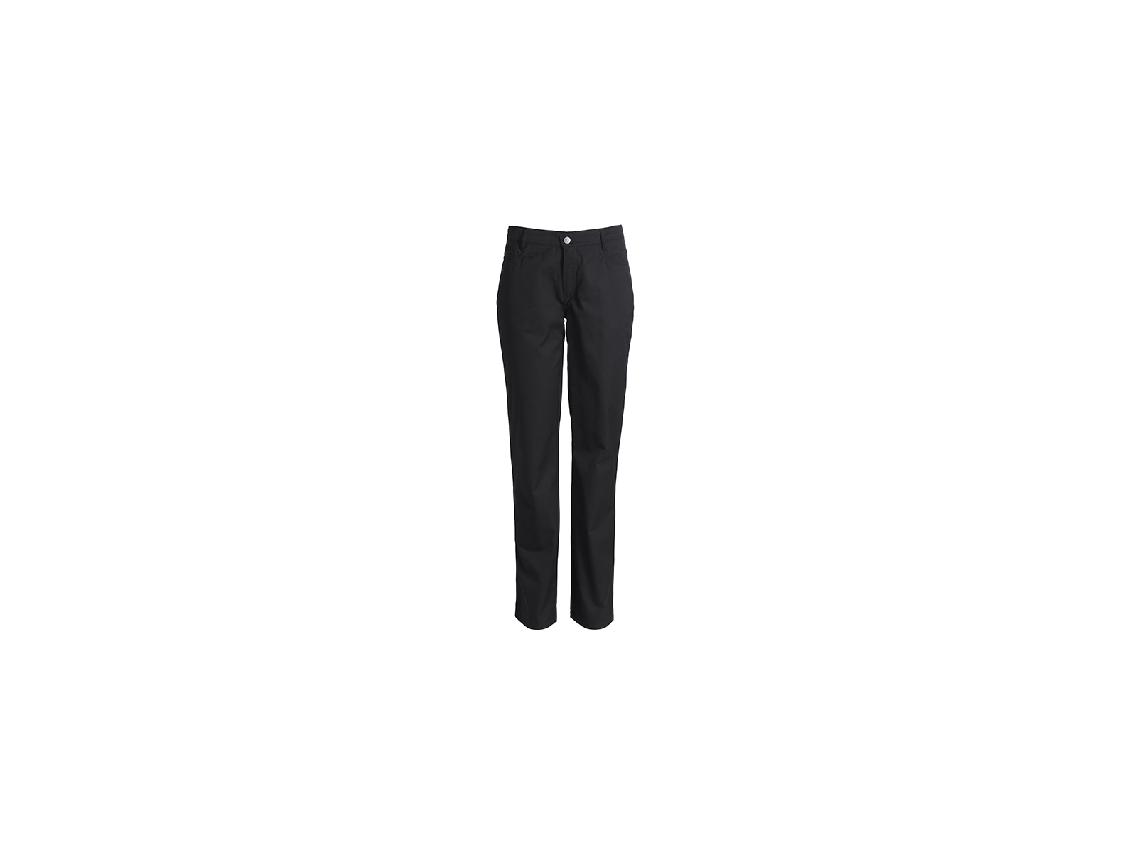 These black women's chef pants from Kentaur blend professional functionality with eco-friendly materials. Made from 65% polyester (recycled from PET bottles) and 35% cotton, these pants offer both durability and comfort during long working hours in the kitchen. Featuring an adjustable waistband, belt loops, and practical pockets, they are designed for the professional kitchen worker.