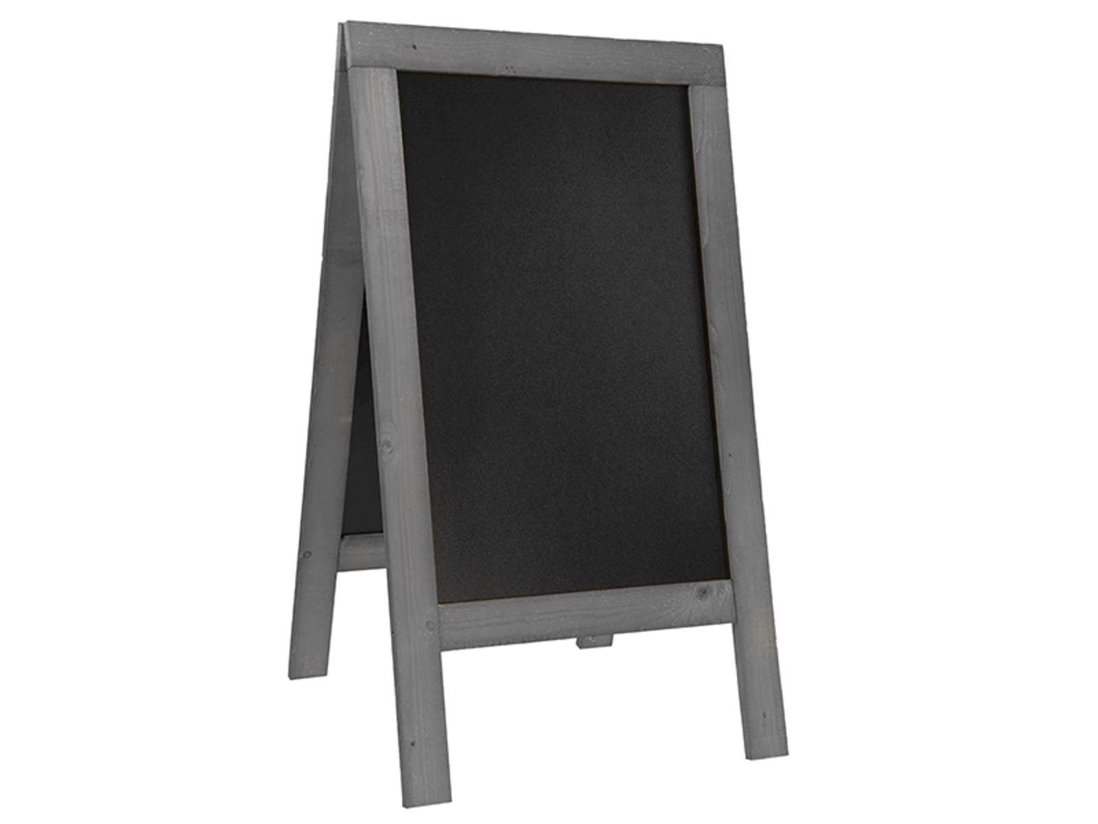 The vintage gray finish of the board provides a sophisticated look that harmonizes with various interior styles. The spacious writing surface allows ample room to present menus, offers, or messages in an inviting manner. Thanks to its lacquered surface, the board is easy to write on and clean, making it practical in busy service environments where information frequently needs updating.