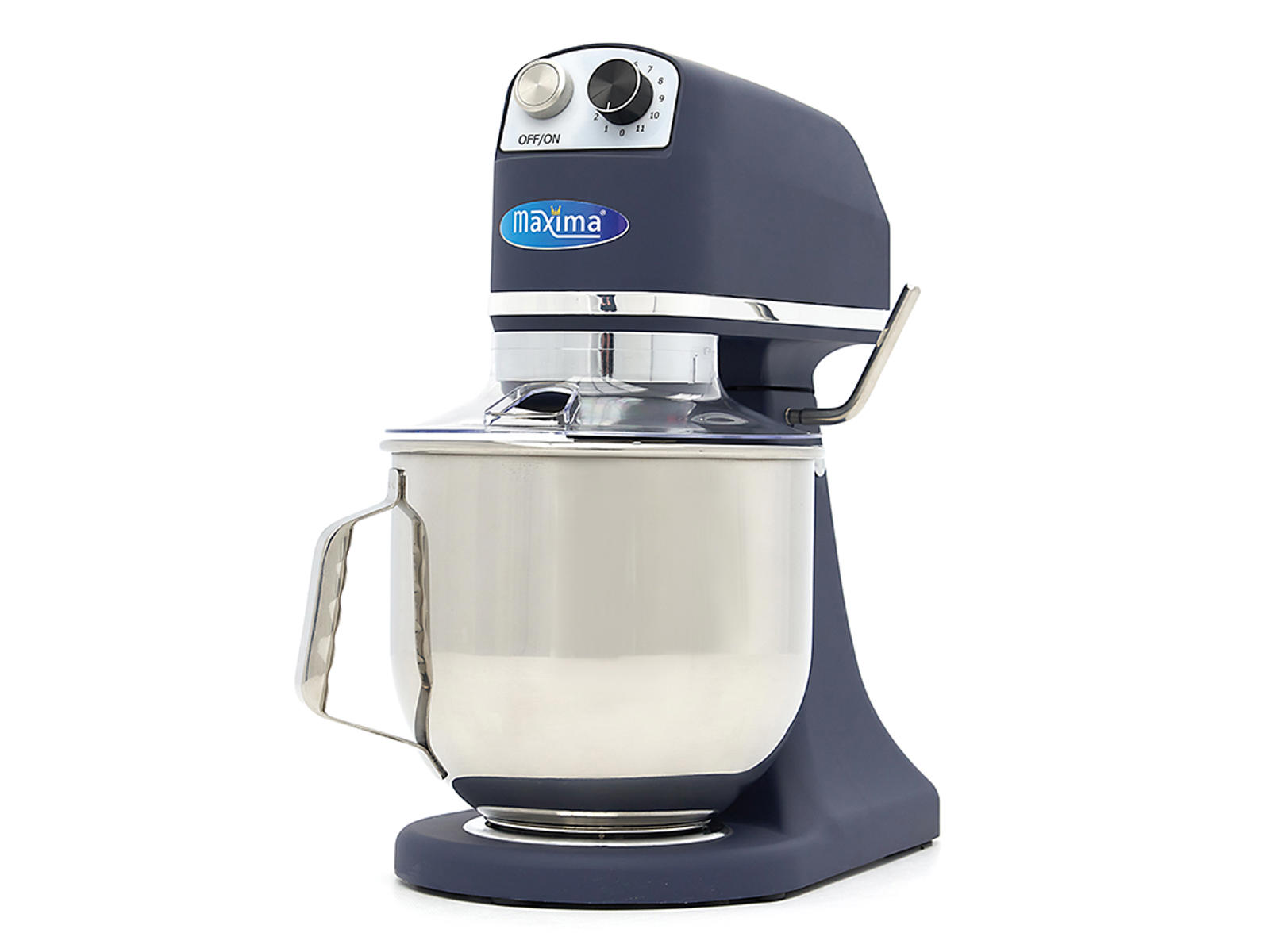 This Maxima MPM stand mixer with a 7-liter capacity combines powerful performance with functionality in a sturdy blue design. With a 350W motor and speed control ranging from 100 to 938 revolutions per minute, it provides exactly the power you need for any task. The machine is ideal for both small and large baking projects, with the capacity to handle up to 2 kg of dough.