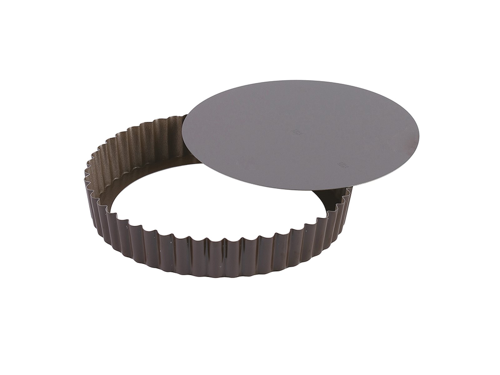 This round tart pan from Gobel is made of steel with a double non-stick coating reinforced with ceramic. With a diameter of 22 cm, a height of 2.5 cm, and a distinctive fluted edge, the pan ensures both functionality and an elegant final result. The removable bottom makes it easy to release your baked goods without damaging them.