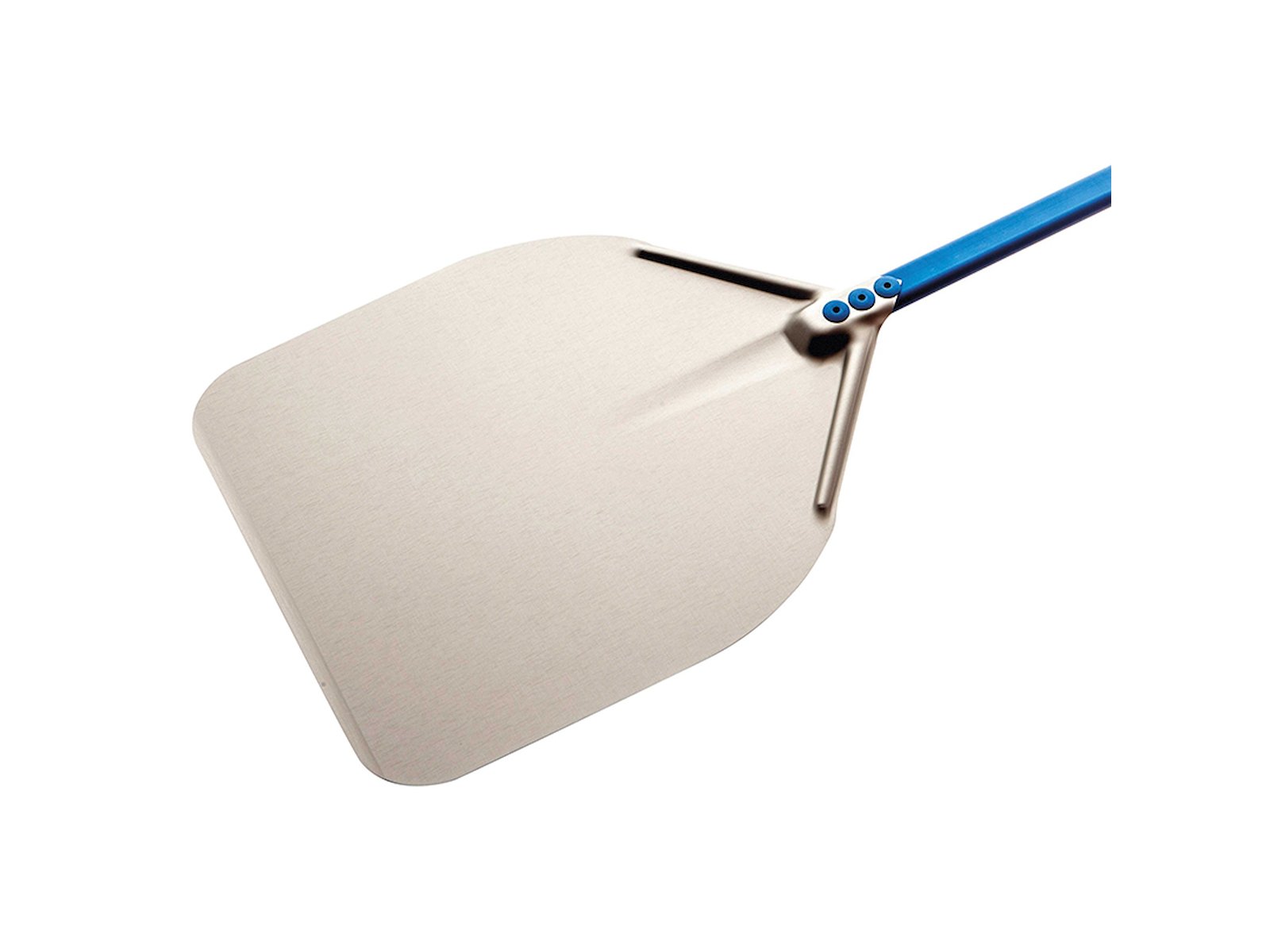 The Azzurra pizza peel features a 33x33 cm blade and a 150 cm long handle, providing optimal control when handling pizzas. This tool is specifically designed for the professional kitchen staff working with pizza preparation. The pizza peel is crafted to make inserting and removing pizzas from the oven as simple and safe as possible.