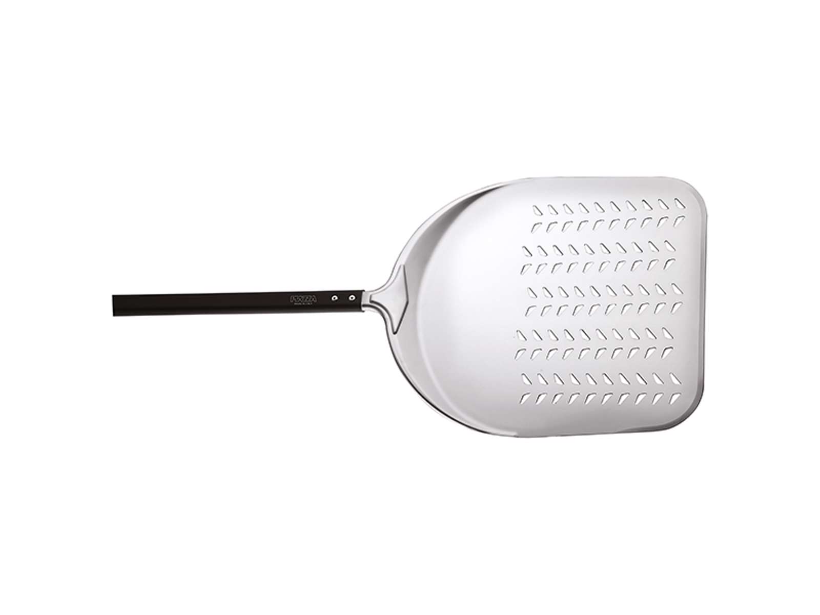 The perforated aluminum peel is designed with grooves and slopes on three sides, providing a better grip on the pizza and reducing the risk of it sliding off during handling. The reinforcement ribs on the back of the blade offer a perfect balance of lightweight and strength, allowing you to work efficiently even during busy periods. The black anodized aluminum handle is connected to the blade with a cast aluminum core, secured with stainless steel rivets for maximum durability.
