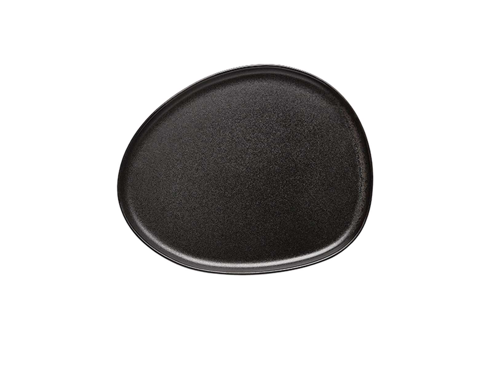 The RAW Titanium Black plate, measuring 24x21 cm, is crafted from powerful, deep black stoneware with a distinctive glaze. Each plate is handmade, showcasing a unique color saturation and texture, giving every piece a distinctive look. The scratch-resistant finish ensures that the plate retains its beautiful appearance even after years of use.