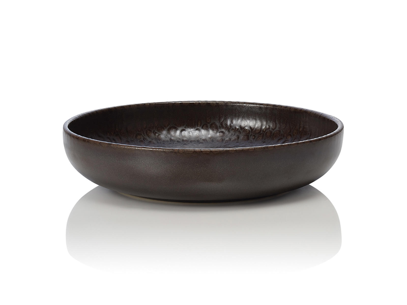The One Metallic Brown plate is crafted from high-quality stoneware that has been fired at 1,170°C. The dark brown glaze features a metallic sheen, creating a vibrant and varied surface. Small irregularities in color and texture make each piece unique, adding a raw elegance with a modern edge. The tactile, almost volcanic surface offers a special sensory experience when using the plate. Please note that scratches from cutlery may occur with regular use.