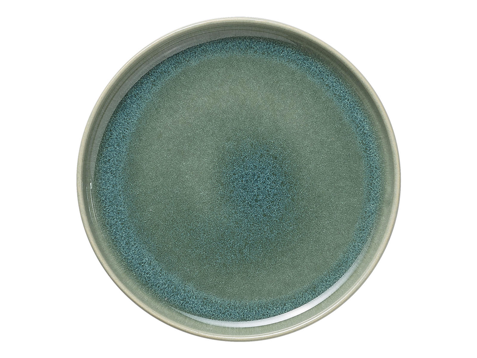 This plate from Rockzzero, with a diameter of 17.5 cm and a height of 2.5 cm, is made from durable stoneware featuring a distinctive green-blue glaze. Its compact size makes it ideal for appetizers, desserts, and smaller dishes, while its elegant design adds a stylish touch to any table.