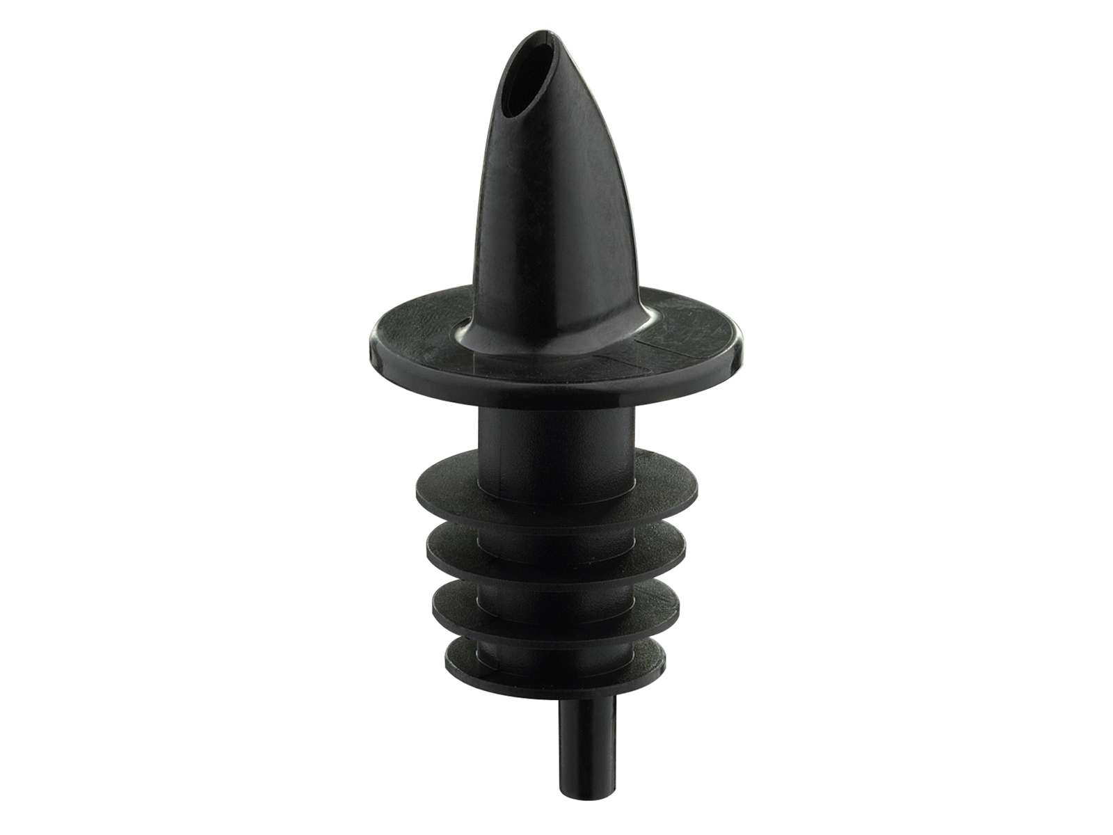 The pouring spout features a "free flow" function with a dosing speed of approximately 1 cl per second for unsweetened spirits. It can be used for all common types of spirits as well as sour beverages. With its compact size of 2.3 cm and light weight of just 5 grams, it is easy to handle. The spout is made from food-safe plastic in black and can be cleaned in a dishwasher.
