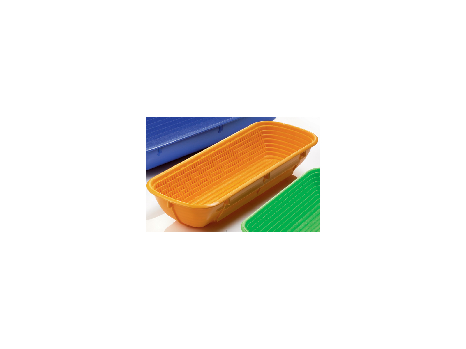 The proofing basket measures 130 mm in width and 350 mm in length, providing ample area for proofing up to 1000 grams of dough. The orange color makes it easy to identify the basket in a busy kitchen, and the material is resistant to everyday wear and tear. Please note that the basket is designed solely for proofing and not for baking.