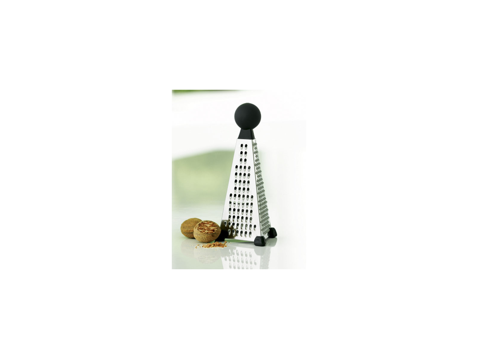 Each of the three sides of this pyramid-shaped grater has its own function. The fine grating surface is perfect for harder ingredients like parmesan and nutmeg, where you want a delicate result. The coarse grating surface handles larger quantities of vegetables and cheese, while the slicing side creates thin, uniform slices for salads and presentations. This allows you to vary the texture in your dishes without having to switch between different kitchen tools.