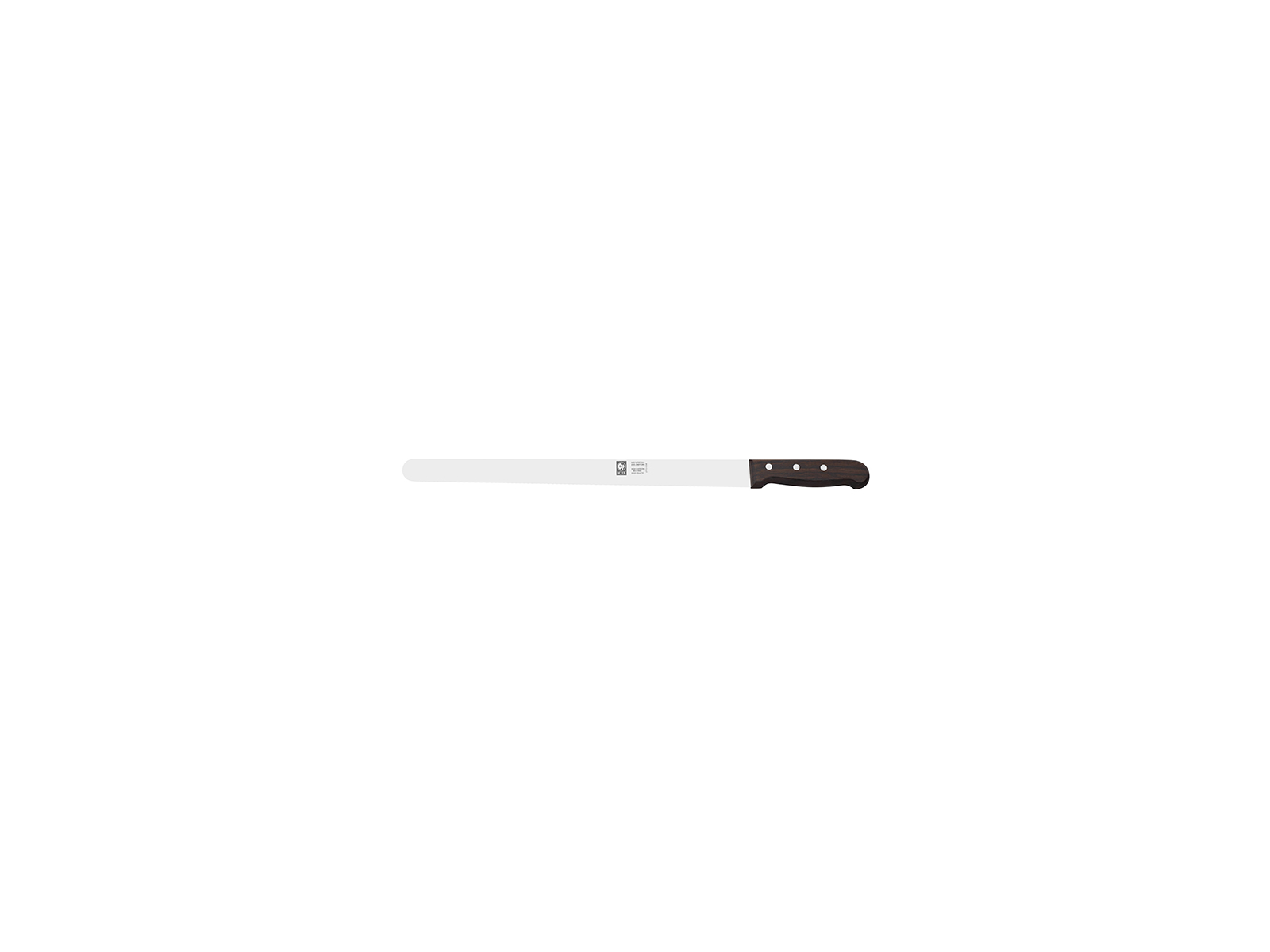 The Icel Tradicao salmon knife, with its 36 cm blade, allows you to cut beautiful, uniform slices of salmon and other large fish. The long, flexible blade glides through the fish in one smooth motion, while the elegant rosewood handle ensures a comfortable and secure grip during use.
