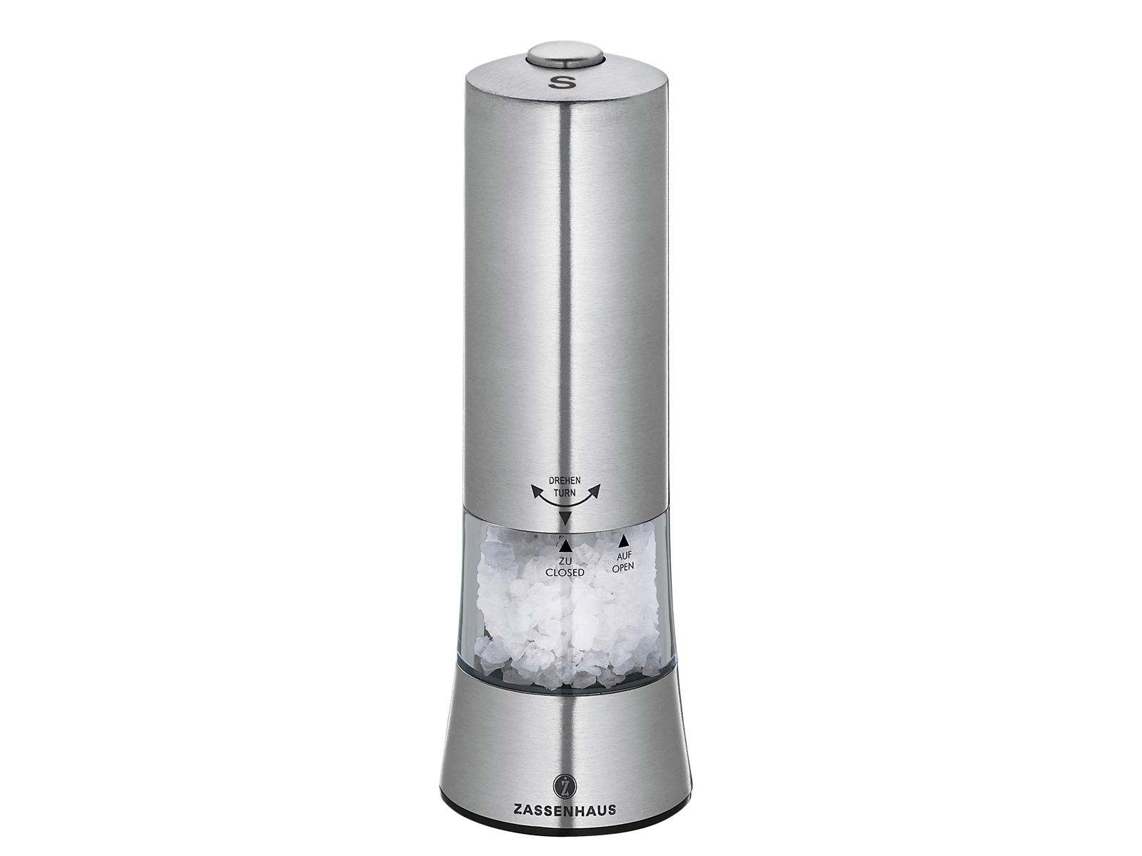 The electric one-handed function allows you to grind salt while simultaneously stirring your food or performing other kitchen tasks. This is particularly valuable when you need to taste your dish during cooking, as you won't have to interrupt your workflow. The grinding mechanism from Zassenhaus is known for its high quality, ensuring consistent grinding and long-lasting performance.