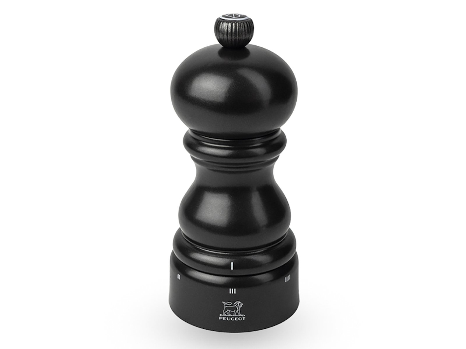 The salt mill is made of black wood, measuring 12 cm in height and weighing only 165 grams. It features Peugeot's patented u'Select system with six different grinding settings and a durable zirconia mechanism designed specifically for grinding salt. The Paris series from Peugeot is renowned for its iconic shape, ergonomics, and precision.