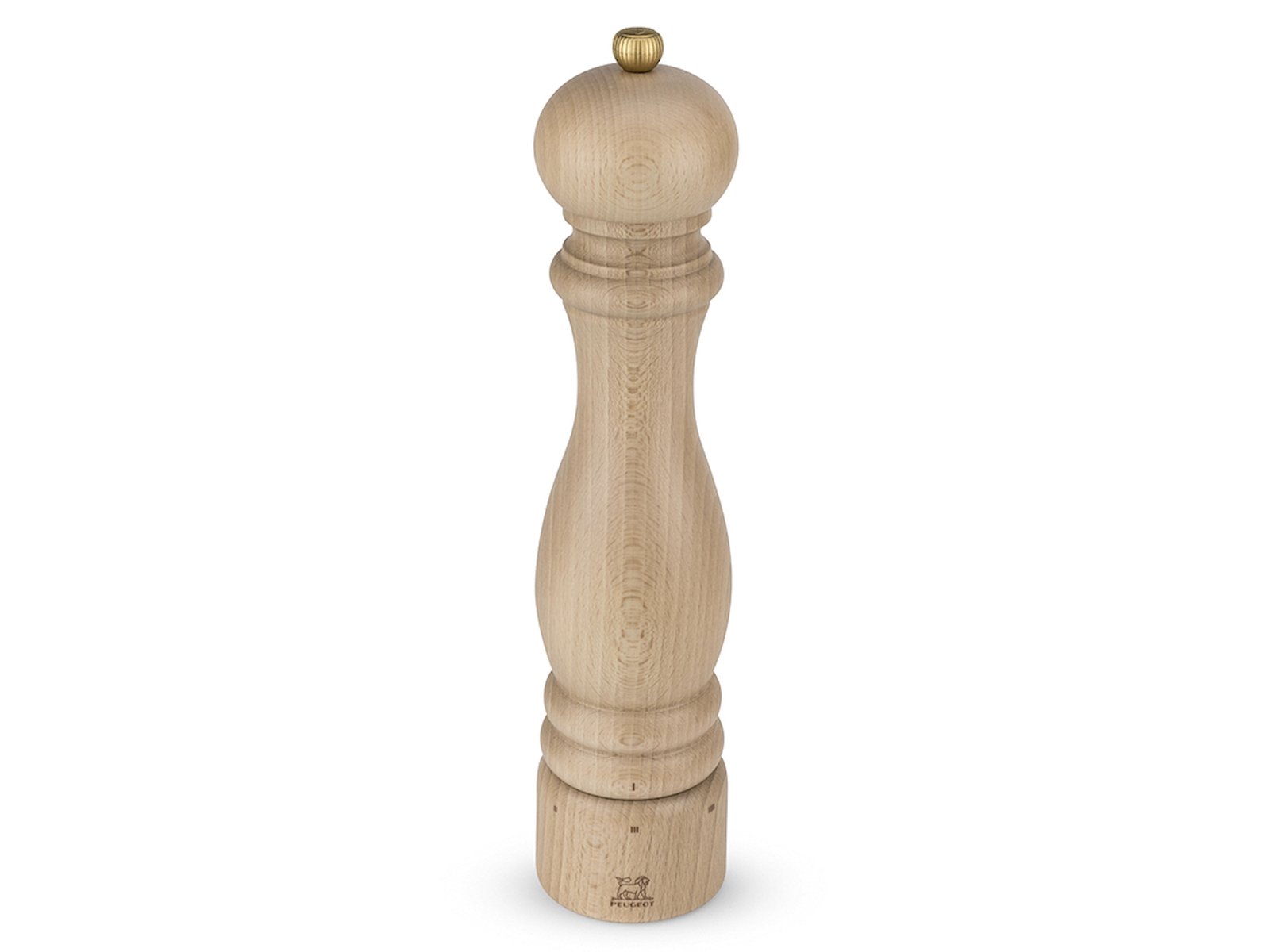 This Peugeot salt grinder measures 30 cm in height and weighs 584 grams, providing a good balance in hand. The grinding mechanism is made of zirconia - an extremely hard ceramic material, perfect for crushing salt without being affected by its corrosive properties. Peugeot has been producing grinders since 1840 and is recognized for their quality and durability.
