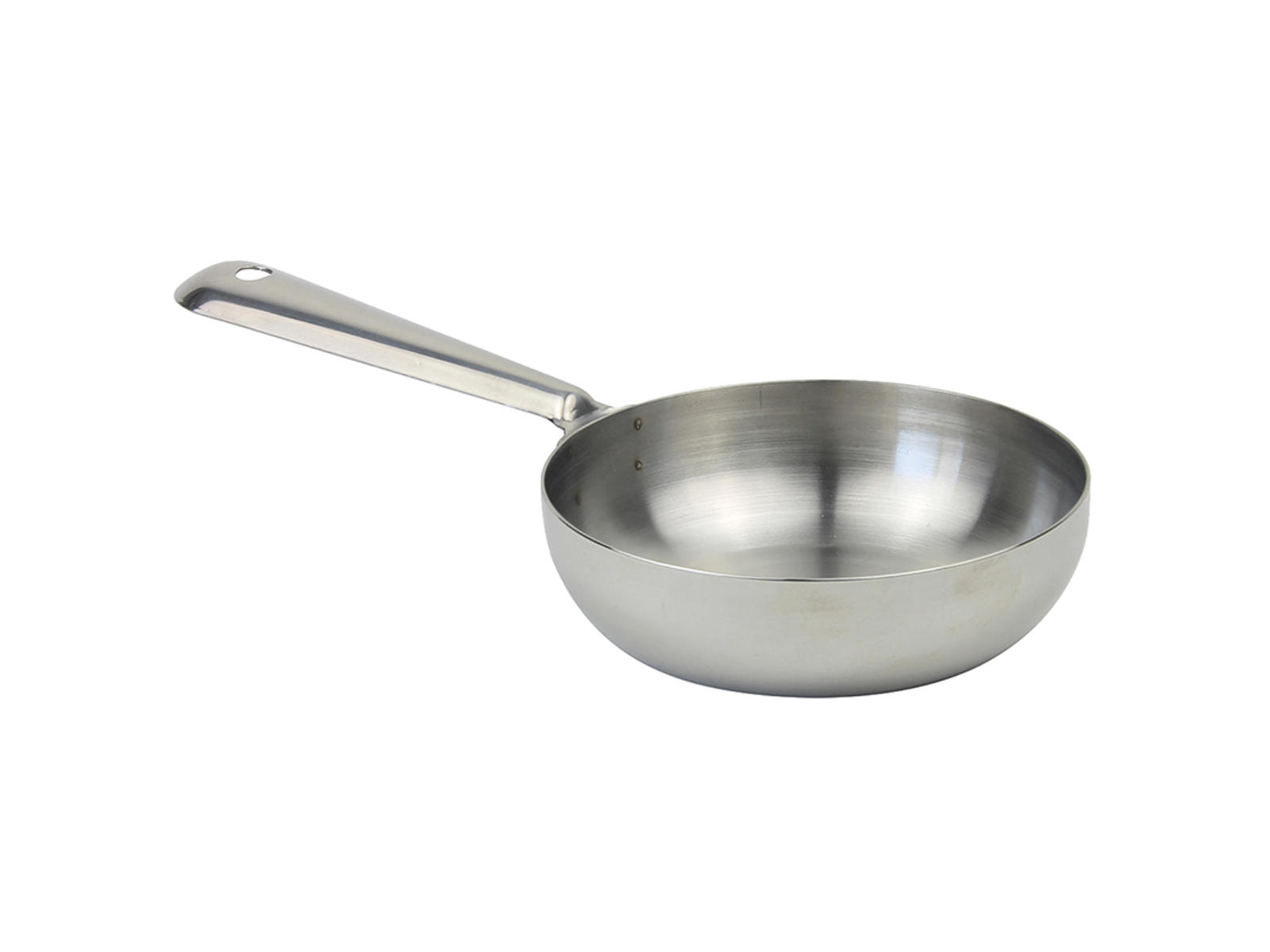 The stainless steel used in this mini pan offers several benefits for everyday kitchen tasks. The material evenly distributes heat, ensuring precise cooking even for small quantities. Its corrosion-resistant surface means the pan withstands wear and daily use without losing its functionality or appearance. Weighing just 139 grams, it is easy to handle and maneuver, even when working with intricate presentations.