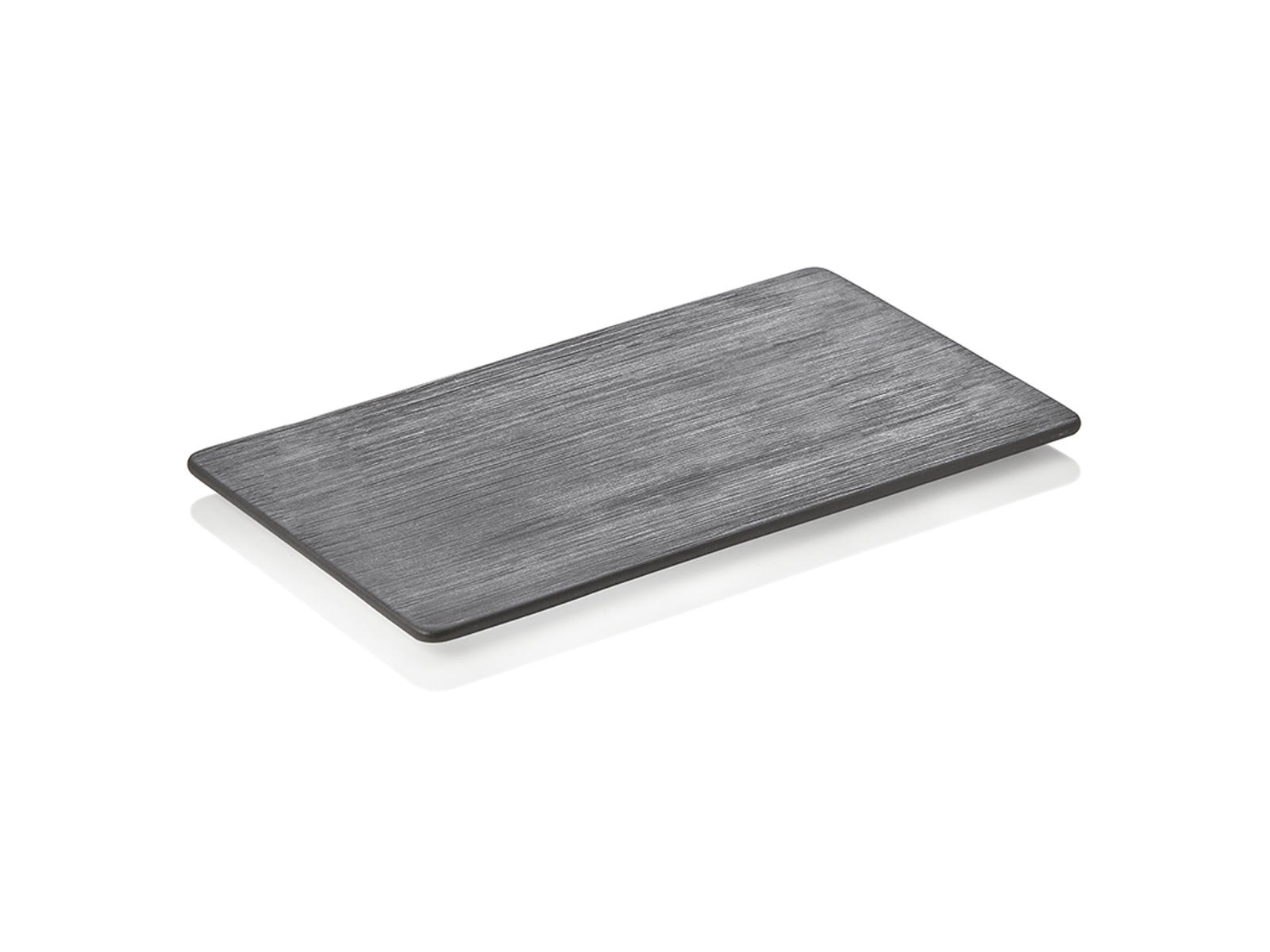 The serving dish measures 10 mm in height, 162 mm in depth, and 265 mm in length. It is crafted from durable porcelain with a textured surface that provides a modern aesthetic. The standardized GN1/4 size ensures compatibility with other GN products in your kitchen.