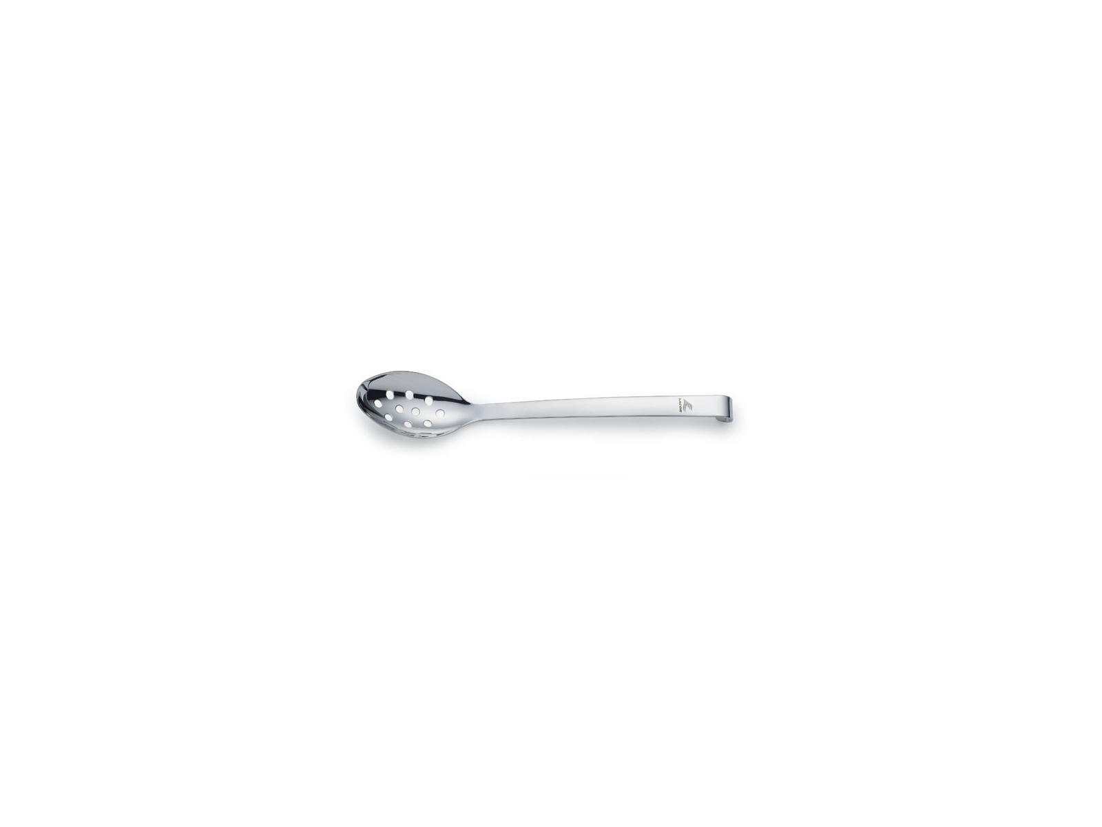 • Stainless steel slotted spoon with practical design for professional serving