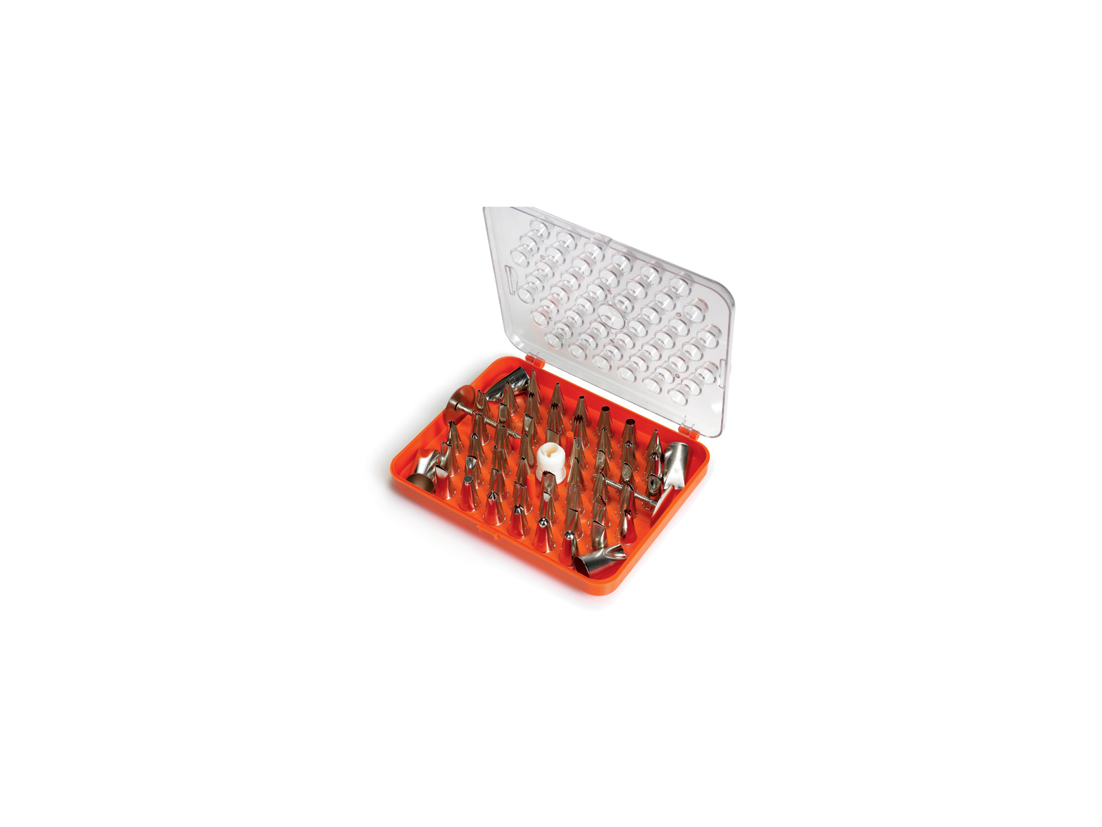 This piping set from Schneider offers you 55 different options to create stunning decorations on cakes and desserts. With high-quality stainless steel nozzles, you get durable tools that can be used repeatedly. All the pieces come in a convenient plastic box that keeps your nozzles organized and protects them between uses.