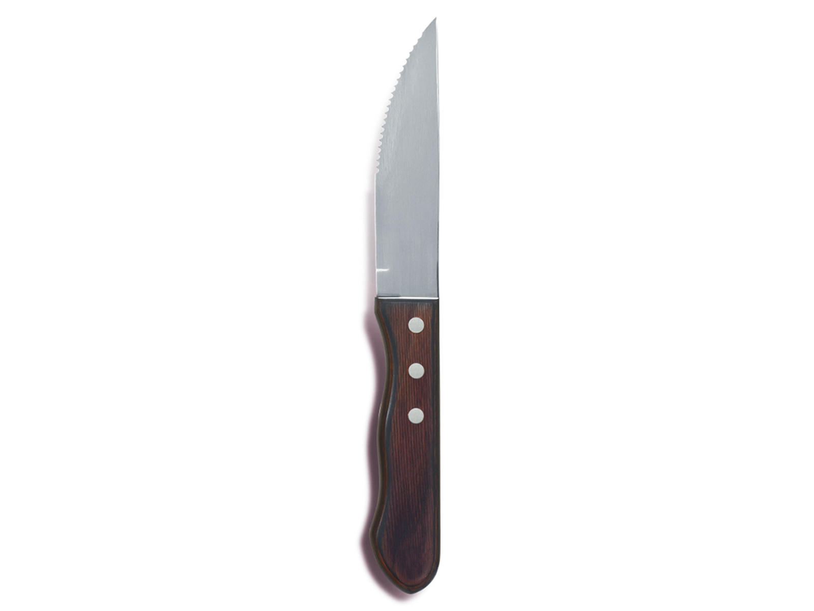 The stainless steel blade of the Jumbo steak knife is designed to cut through even the toughest meat with minimal resistance. Its solid construction ensures that the knife stays sharp longer and withstands daily use in busy kitchen environments. The brown-finished handle not only provides a professional look but also contributes to the knife's balance, allowing you to work precisely and safely.