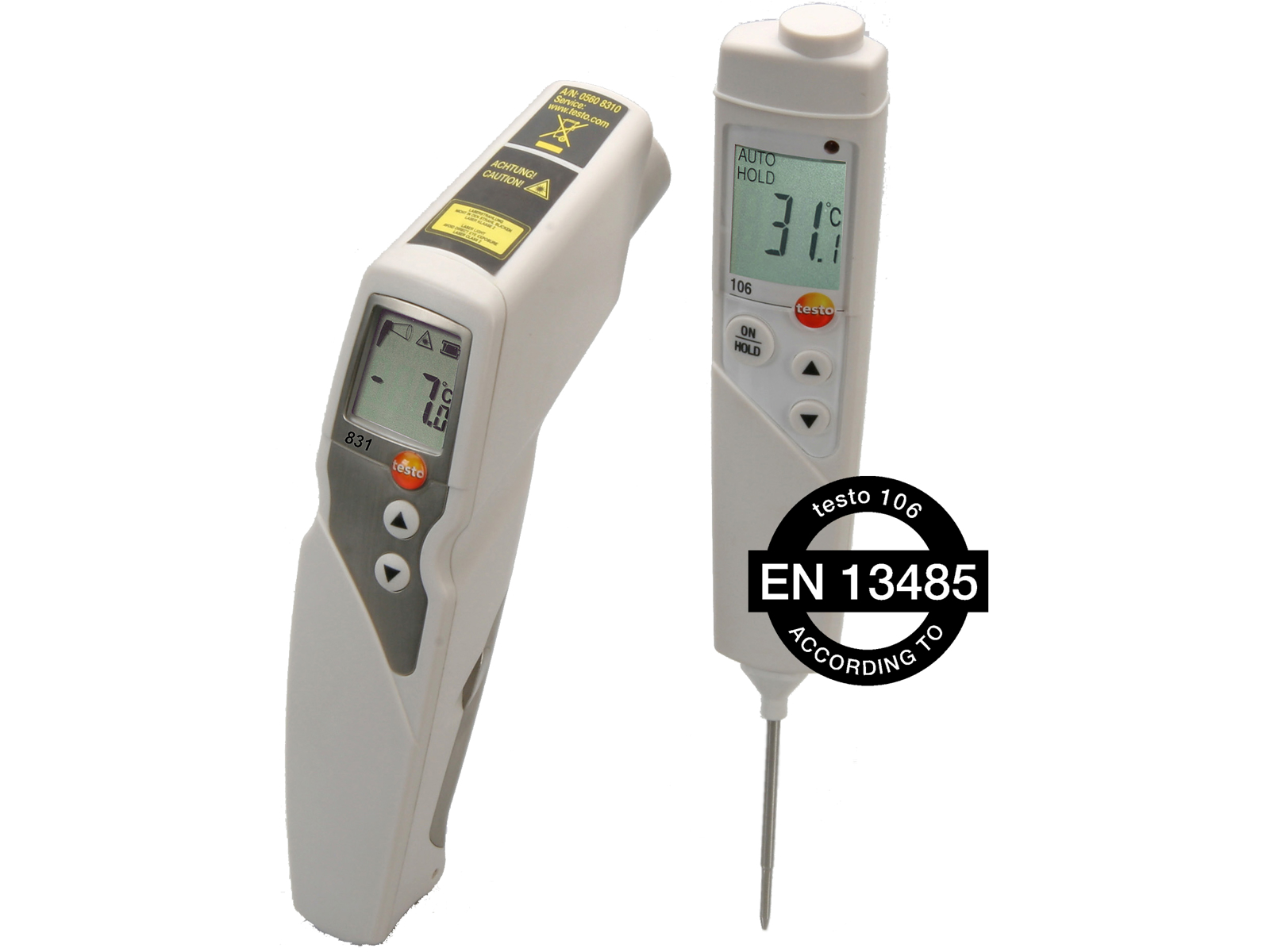 - Complete set with both IR thermometer (Testo 831) and probe thermometer (Testo 106)