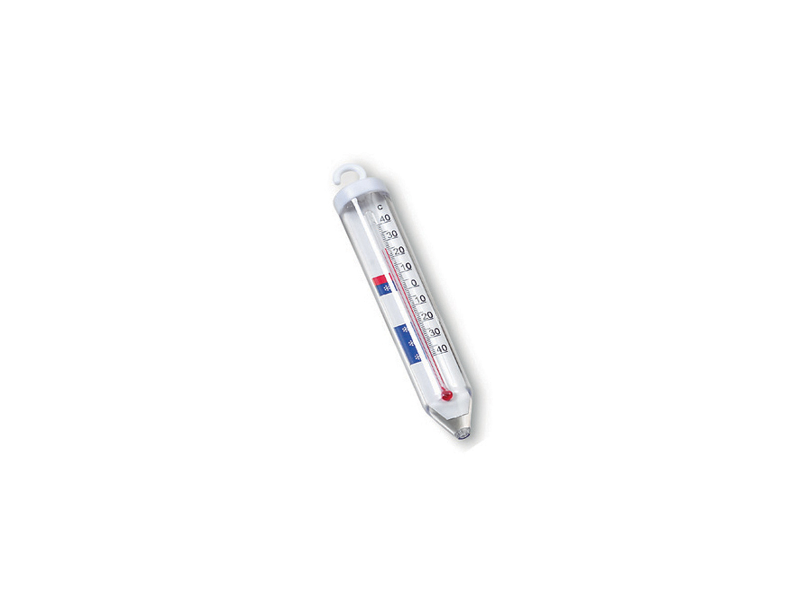 The thermometer can either be placed on a shelf or hung up, depending on the model. Position it centrally in the refrigerator for the most accurate measurement.