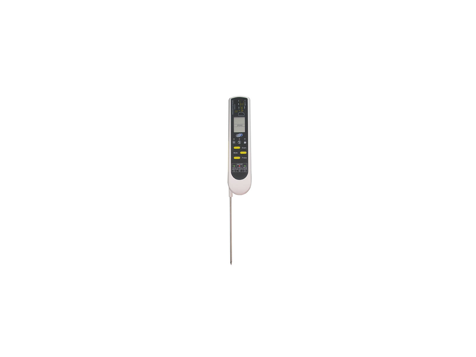 This digital thermometer from TFA Dostmann combines two measurement methods in one professional instrument. With both an infrared sensor for contactless measurement and a probe for precise core temperature measurement, you gain maximum flexibility in your food handling tasks. The thermometer is HACCP compliant, EN13485 certified, and designed to withstand the rigors of busy kitchen environments.